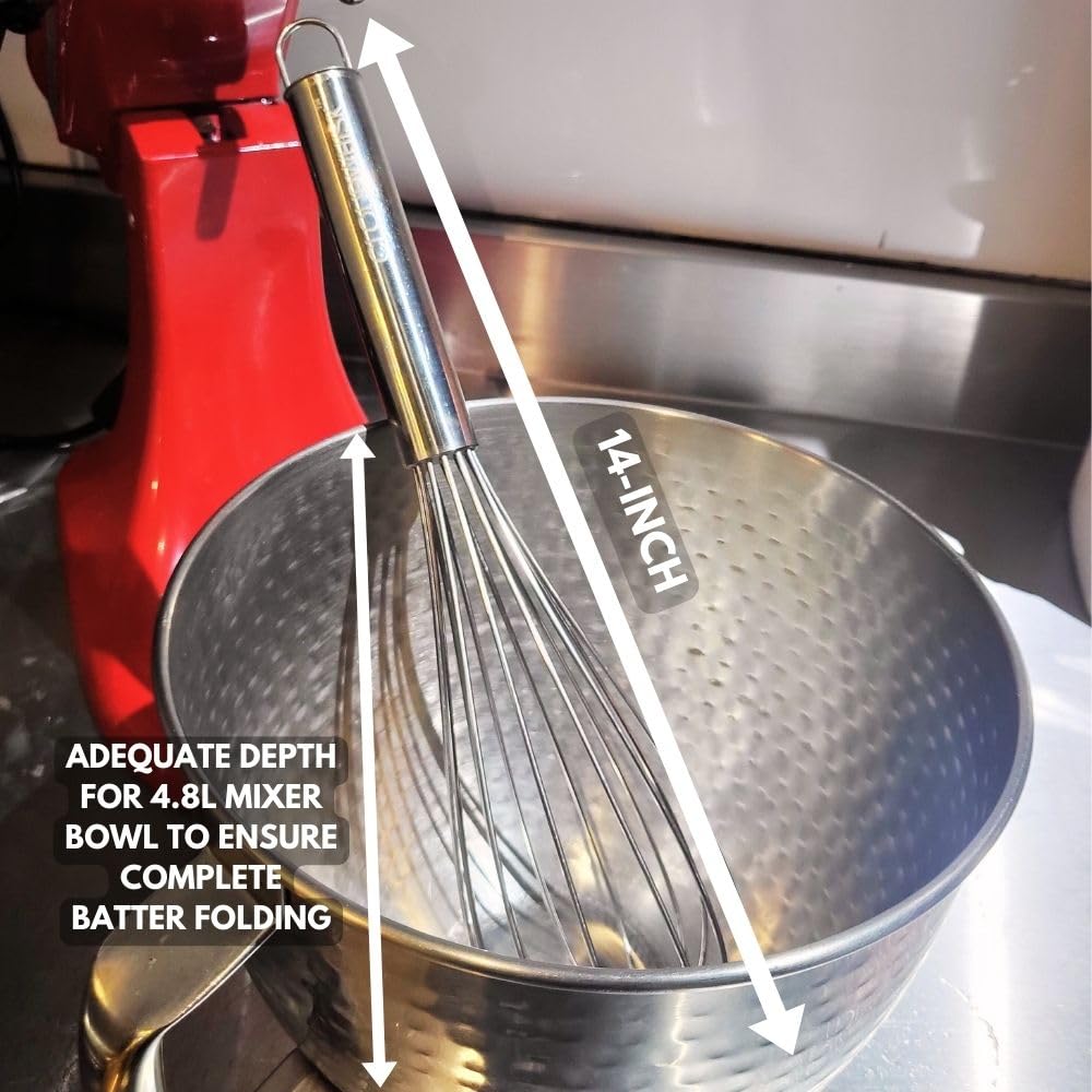 - DURABILITY AND QUALITY: With its sturdy construction and ergonomic design, this stainless steel baking whisk makes the process of blending and folding a breeze, allowing you to create bakery-worthy treats with ease.
