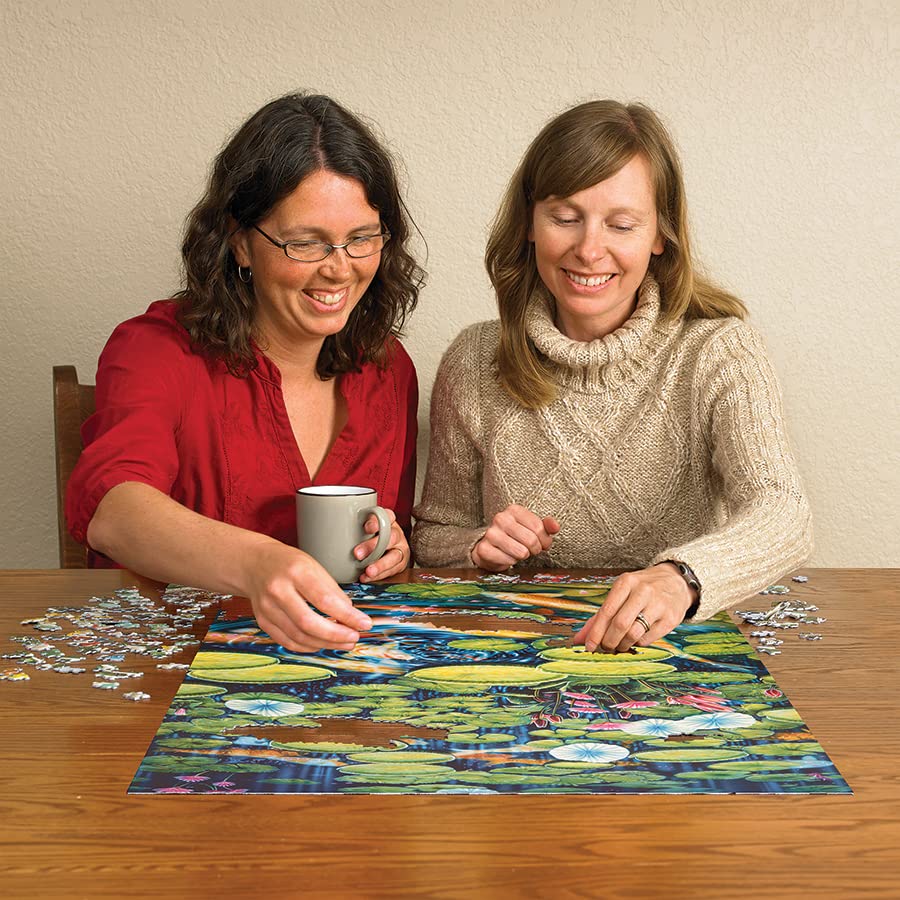 Koi Pond by Cobble Hill. 1000 pieces. Measures 26.625″ x 19.25″ when complete. Indulge in a high-quality Cobble Hill puzzle. Made in the USA with the finest inks, premium grade blue board, linen wrap, and the most endearing images. A pure delight for all ages. For nearly 10 years, Cobble Hill has offered fine quality, whimsical jigsaw images to the puzzle enthusiasts worldwide. Friends and families will surely find something to love with the many nostalgic, endearing selections Cobble Hill has to offer.