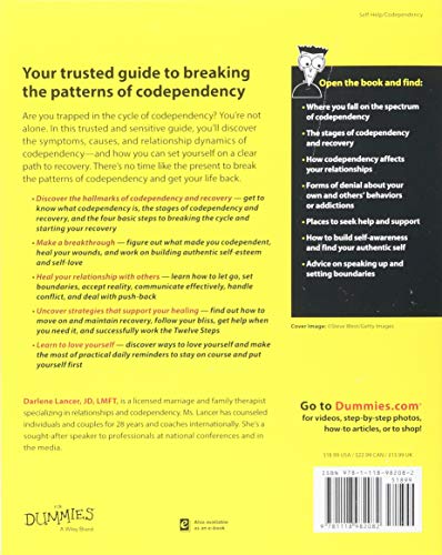 Your trusted guide to value yourself and break the patterns of codependency Codependency For Dummies, 2nd Edition is the most comprehensive book on the topic to date. Written in plain English and packed with sensitive, authoritative information, it describes the history, symptoms, causes, and relationship dynamics of codependency. The majority of the book is devoted to healing and lays out a clear plan for recovery with exercises, practical advice, and daily reminders to help you know, honor, protect, and express yourself. New to this edition are chapters on working the Twelve Steps to recover from codependency and how therapists/coaches/nurses are affected by codependency. Codependence is primarily a learned behavior from our family of origin. Some cultures have it to a greater degree than others–some still see it as a normal way of living. Yet the costs of codependence can include distrust, faulty expectations, passive-aggressiveness, control, self-neglect, over-focus on others, manipulation, intimacy issues, and a slew of other harmful traits. Codependence causes serious pain and affects the majority of Americans–not just women and loved ones of addicts. Codependency For Dummies, 2nd Edition offers authoritative and trusted guidance on ways to raise your self-esteem, detach and let go, set boundaries, recognize healthy vs. dysfunctional relationships, overcome guilt and resentment, and much more. Helps you break the pattern of conduct that keeps you in harmful relationships Provides trusted guidance to create healthy boundaries, coping skills, and expectations Offers advice for eliminating feelings of guilt, blame, and feeling overly responsible Explains the difference between care-giving and codependent care-taking If you’re trapped in the cycle of codependency and looking for help, Codependency For Dummies, 2nd Edition offers trusted advice and a clear plan for recovery.