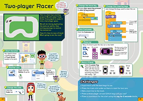 Coding with Scratch – Create Fantastic Driving Games will take you from Scratch basics through to creating your own fantastic driving games in easy steps. Each game comes with challenges to take you to the next level of coding. Even includes mods to make your games more exciting. Have fun and amaze your friends and family! You’ll learn how to: Use code to make a series of driving games including parking, racing, scrolling and two-player games. Design your own game levels, cars and tracks. Use variables to keep the score and to store the speed in your games. Add sounds and create your own code blocks and functions. To create the games in this book, children will need a desktop computer or a laptop. The games require a proper keyboard so will not work well on a tablet or iPad. It is recommended that children should be supervised when using the internet, especially when using a new website. This edition is in UK English.