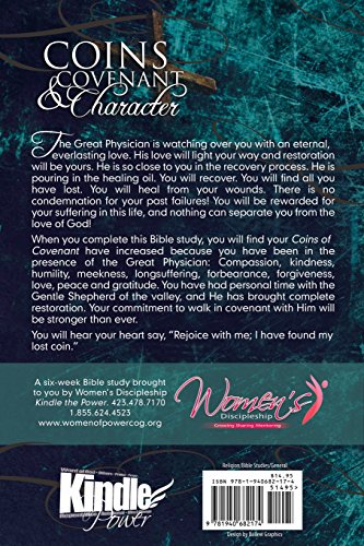 The Great Physician is watching over you with an eternal, everlasting love. His love will light your way and restoration will be yours. He is so close to you in the recovery process. He is pouring in the healing oil. You will recover. You will find all you have lost. You will heal from your wounds. There is no condemnation for your past failures! You will be rewarded for your suffering in this life, and nothing can separate you from the love of God! When you complete this Bible study, you will find your Coins of Covenant have increased because you have been in the presence of the Great Physician: Compassion, kindness, humility, meekness, longsuffering, forbearance, forgiveness, love, peace and gratitude. You have had personal time with the Gentle Shepherd of the valley, and He has brought complete restoration. Your commitment to walk in covenant with Him will be stronger than ever. You will hear your heart say, “Rejoice with me; I have found my lost coin.”