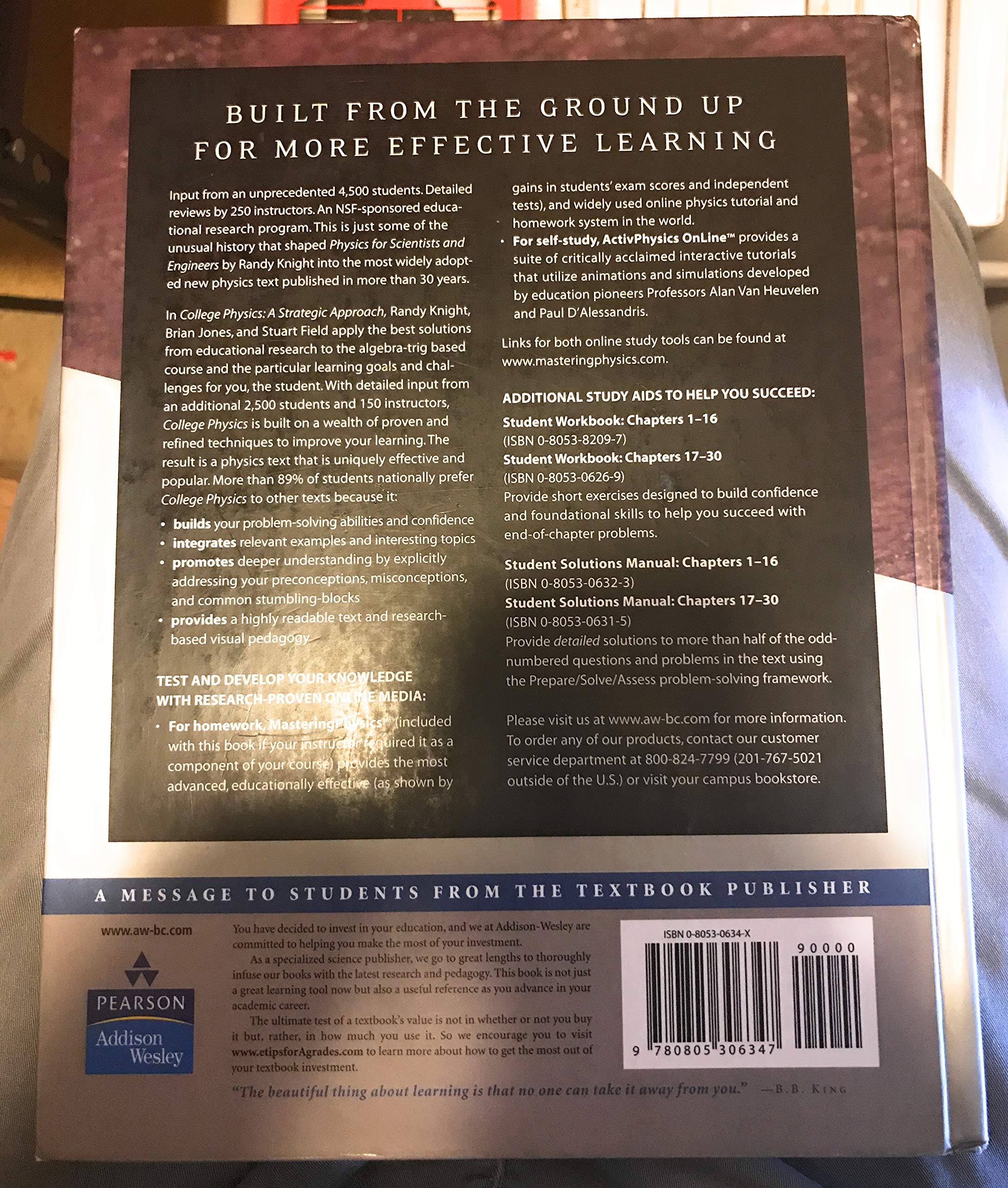 This loose-leaf, three-hole punched version of the textbook gives students the flexibility to take only what they need to class and add their own notes-all at an affordable price. For courses in algebra-based introductory physics. Make physics relevant for today’s mixed-majors students College Physics: A Strategic Approach, 4th Edition expands its focus from how mixed majors students learn physics to focusing on why these students learn physics. The authors apply the best results from educational research and Mastering(tm) Physics metadata to present basic physics in real world examples that engage students and connect physics with other fields, including biological sciences, architecture, and natural resources. From these connections, students not only learn in research-driven ways but also understand why they are taking the course and how it applies to other areas. Extensive new media and an interactive Pearson eText pique student interest while challenging misconceptions and fostering critical thinking. New examples, explanations, and problems use real data from research to show physics at work in relatable situations, and help students see that physics is the science underlying everything around them. A Strategic Approach, 4th Edition, encourages today’s students to understand the big picture, gain crucial problem-solving skills and come to class both prepared and confident. Also available with Mastering Physics Mastering(tm) is the teaching and learning platform that empowers you to reach every student. By combining trusted author content with digital tools developed to engage students and emulate the office-hour experience, Mastering personalizes learning and often improves results for each student. With Learning Catalytics(tm) instructors can expand on key concepts and encourage student engagement during lecture through questions answered individually or in pairs and groups. Students also master concepts through book-specific Mastering Physics assignments, which provide hints and answer-specific feedback that build problem-solving skills. Mastering Physicsnow provides students with the new Physics Primer for remediation of math skills needed in the college physics course. NOTE: You are purchasing a standalone product; Mastering(tm) Geography does not come packaged with this content. Students, if interested in purchasing this title with Mastering Geography, ask your instructor to confirm the correct package ISBN and Course ID. Instructors, contact your Pearson representative for more information. If you would like to purchase both the loose-leaf version of the text and Mastering Geography, search for: 013464414X / 9780134644141 College Physics: A Strategic Approach , Books a la Carte Plus MasteringPhysics with Pearson eText — Access Card Package, 4/e