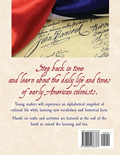 Step back in time and learn about the daily life and times of early American colonists. Young readers will experience an alphabetical snapshot of colonial life while learning new vocabulary and historical facts. Hands on crafts and activities are featured at the end of the book to extend the learning and fun.