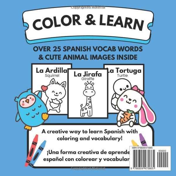 Learn Spanish the Fun Way–Through Coloring! Are you looking for an exciting and engaging way to teach your child Spanish? Our Animals in Spanish Coloring Book makes learning a new language an enjoyable adventure! Perfect for kids ages 6-8, this fun and educational coloring book is packed with benefits that will help improve your child’s Spanish proficiency while sparking creativity. Benefits: Enhanced Learning Experience: Stay engaged in coloring cute animal illustrations while absorbing essential Spanish vocabulary. Kids will have so much fun, they’ll forget they’re learning! Improved Retention: Reinforce new vocabulary by interacting with the coloring pages. Don’t just memorize words–retain them through hands-on, creative learning! Practical Application: Hang your child’s completed pages around the house for an immersive, Spanish-speaking environment! Features: Over 25 Spanish Animal Vocabulary Words Cute Animal Coloring Pages: Each page is filled with adorable illustrations that make learning both fun and interactive, while boosting creativity and concentration. Quality Images and Printing: Bold, easy-to-color designs that make coloring relaxing and enjoyable, while also helping kids develop fine motor skills and artistic abilities. Whether you’re just starting your Spanish journey or looking to expand your skills, this Spanish learning coloring book is the perfect tool to turn every moment into a fun learning opportunity. Watch your child’s language proficiency grow with every stroke of color! Get ready for a colorful adventure in language learning–Order Your Copy Today!