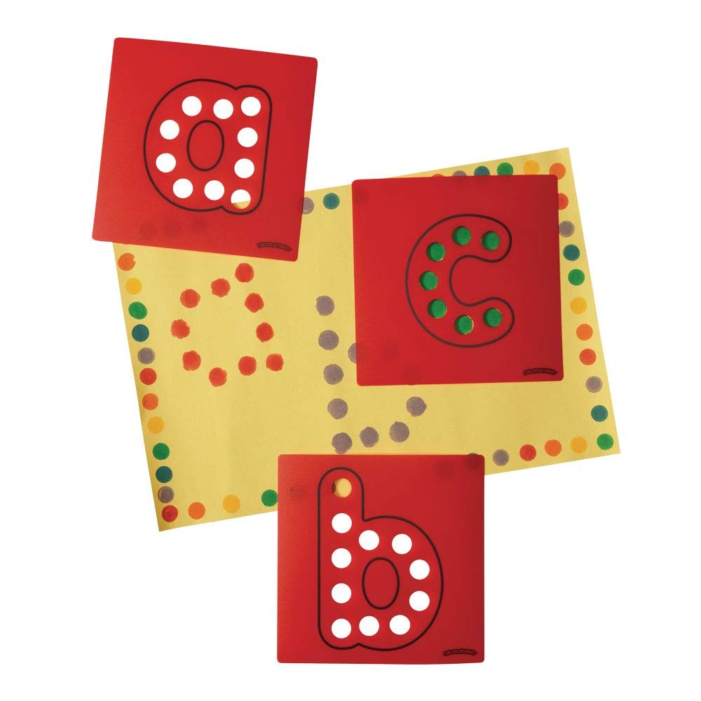 Durable stencils that are easy to use for young children learning their alphabet and numbers. Use at home or in a classroom, for arts and crafts, and more! These stencils have been designed to use with Dabber Dot Markers. Just press the marker and make a dot in each large hole. Remove the stencil and join the dots.