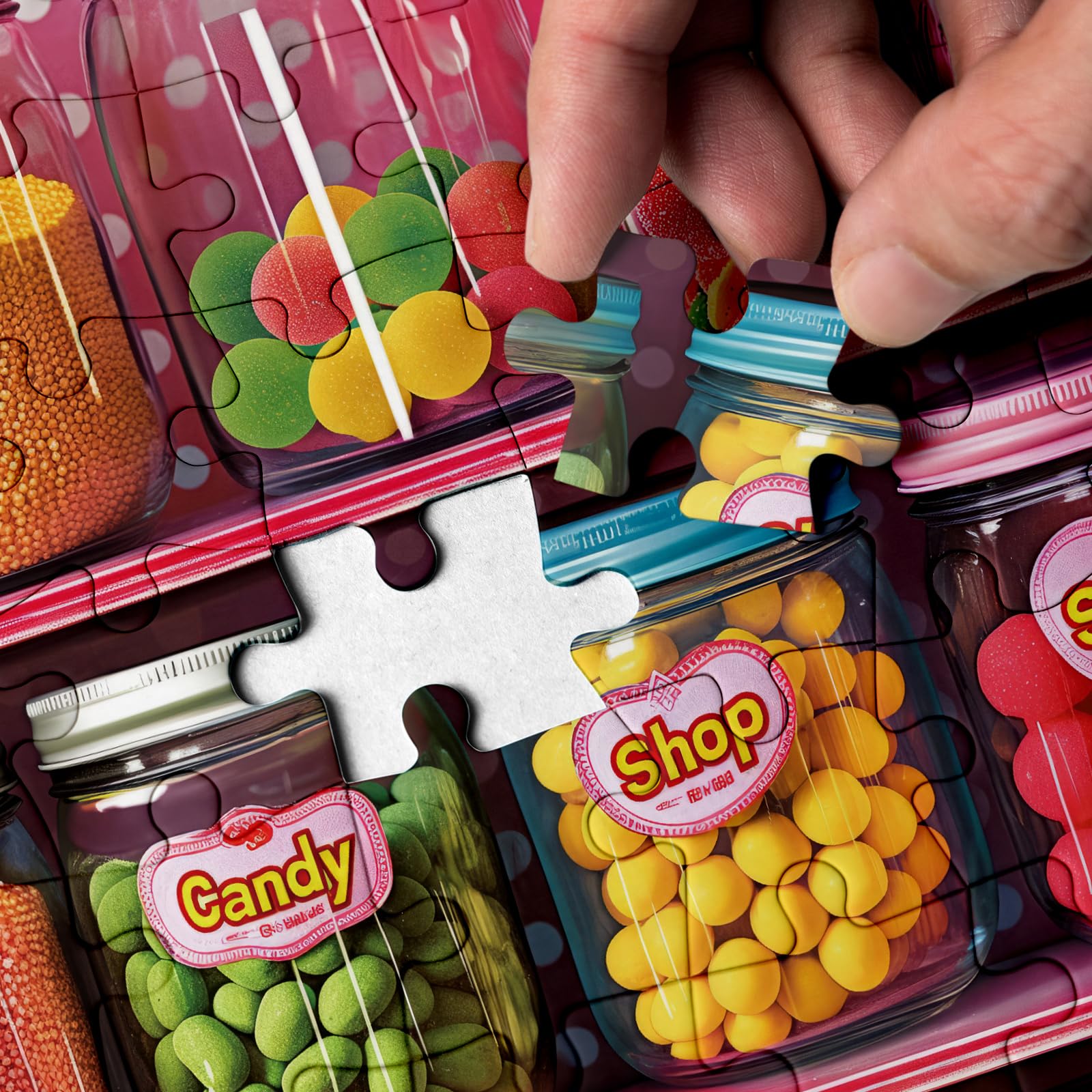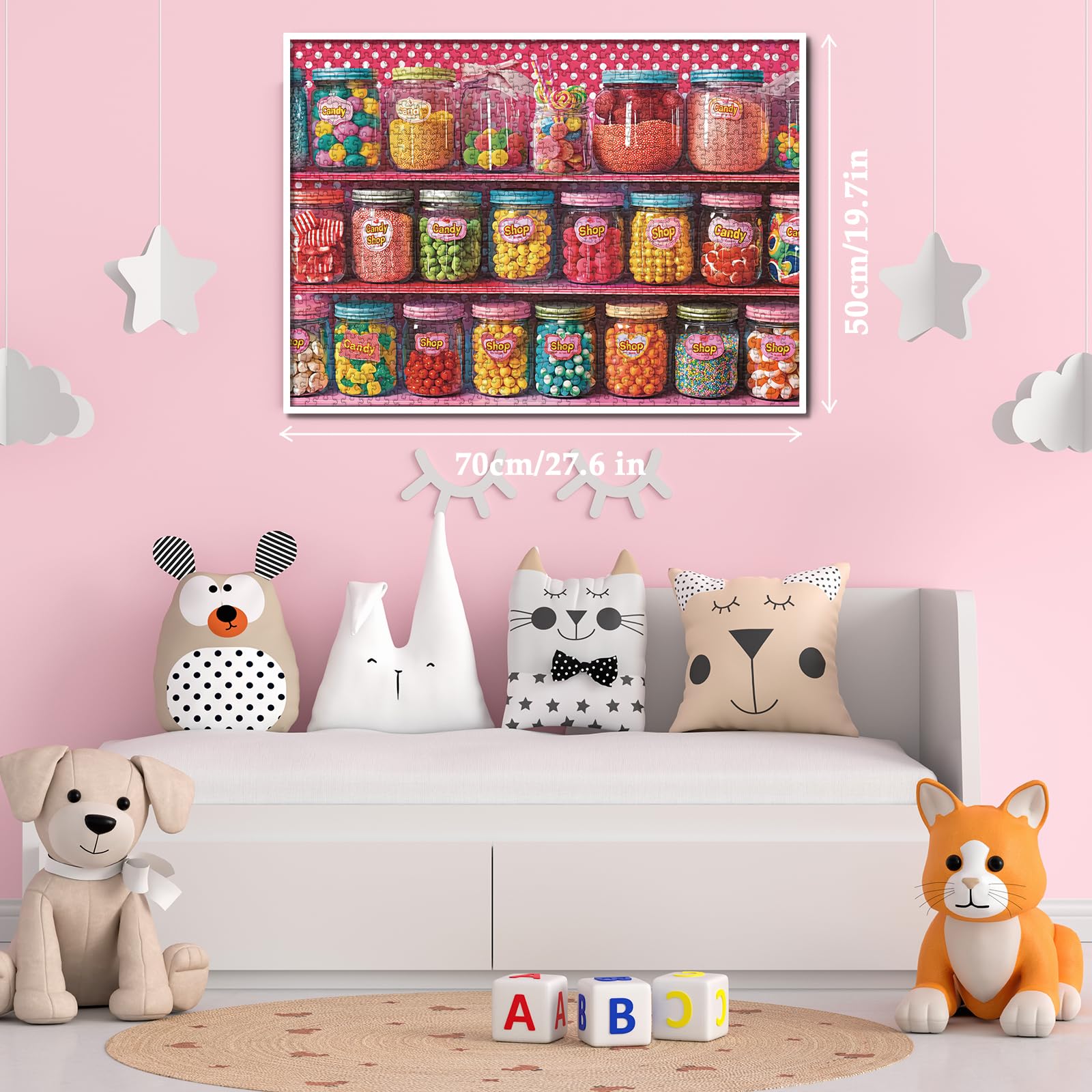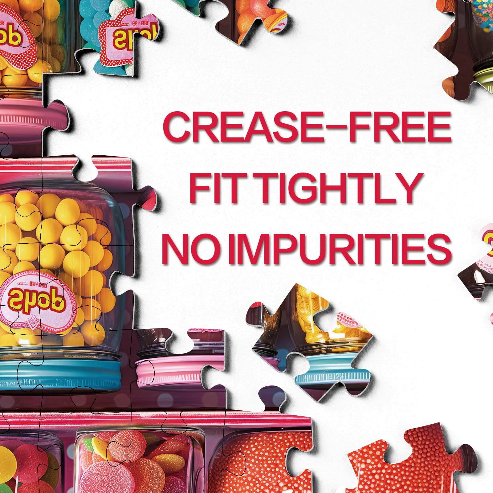 • Benefits of Puzzle Solving:Jigsaw puzzles offer more than just entertainment, they improve cognitive skills and alleviate stress and offer a sense of achievement. This candy jar themed puzzles for adults also serves as charming decor when completed