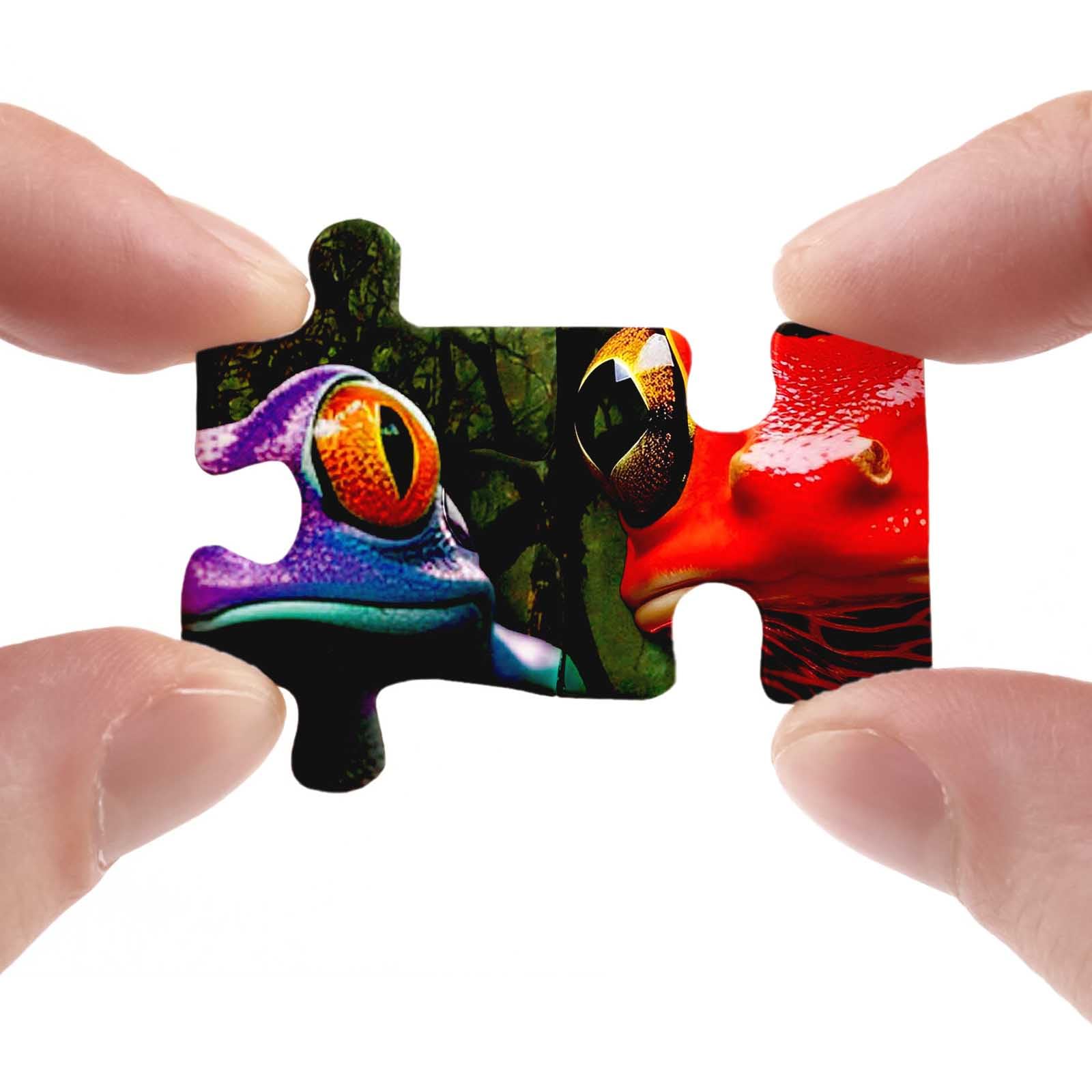 - Vibrant Forest Frogs: Embark on an artistic journey with this puzzle featuring a lively gathering of brightly colored frogs, evoking the enchantment of a vibrant forest scene
