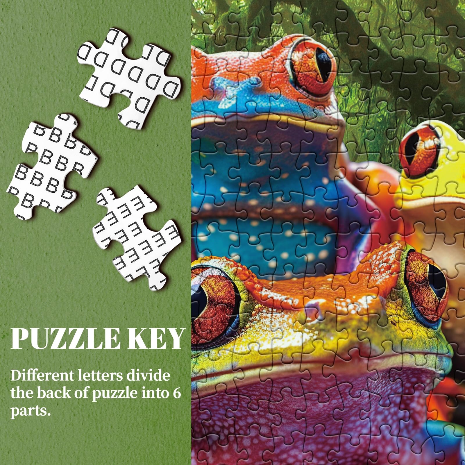 - Enliven Your Space with Forest Whimsy: Transform your surroundings with this vibrant puzzle, inviting the allure of a colorful forest. Immerse yourself in joy and tranquility, surrounded by the lively ambiance of whimsical frogs