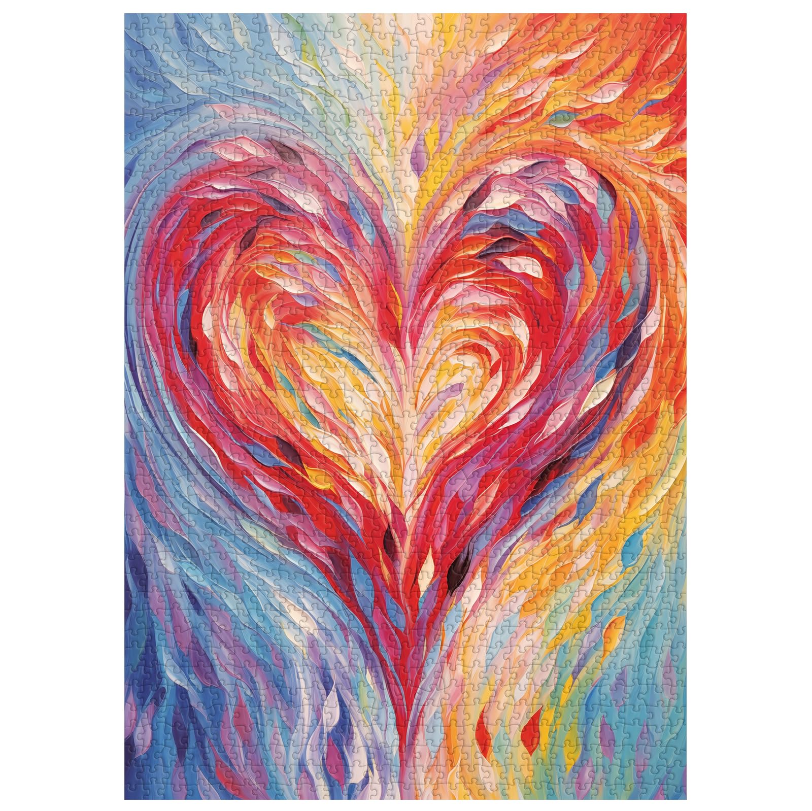 Colorful Heart Puzzles for Adults 1000 Pieces, Rainbow Gradient Love Jigsaw Puzzle, Impossible Valentines Art Painting Challenging Puzzles as Home Decor