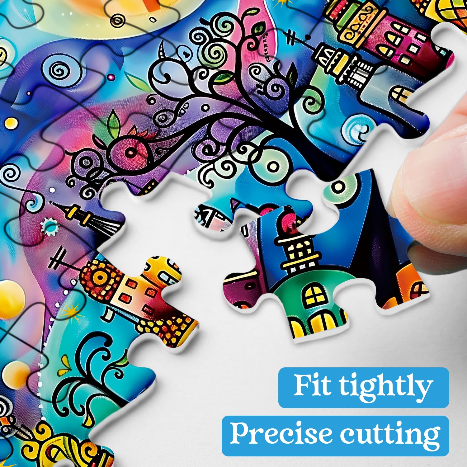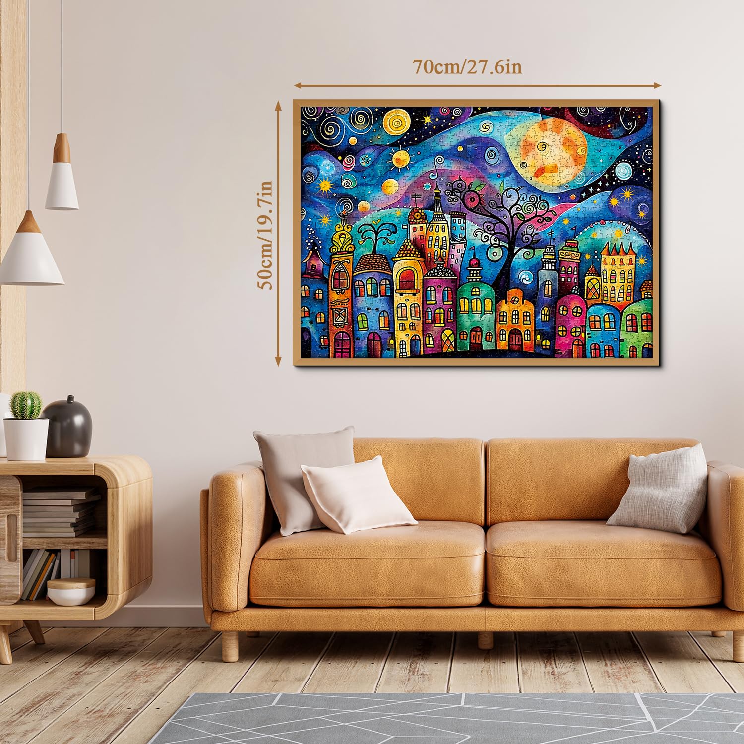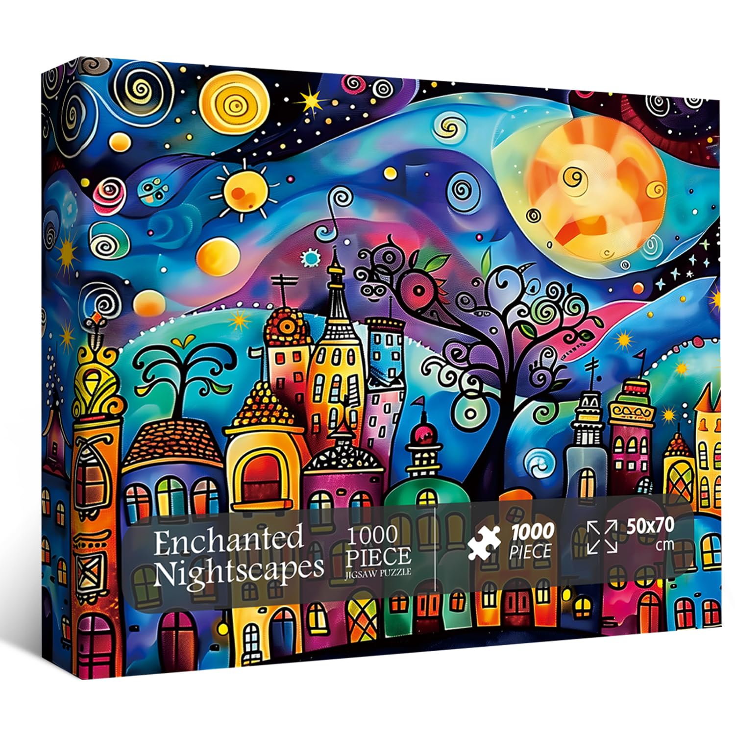 Colorful Houses Puzzles for Adults 1000 Pieces, Village Night Landscape Jigsaw Puzzles, Fantasy Abstract Starry Sky Puzzle as Nature Decor