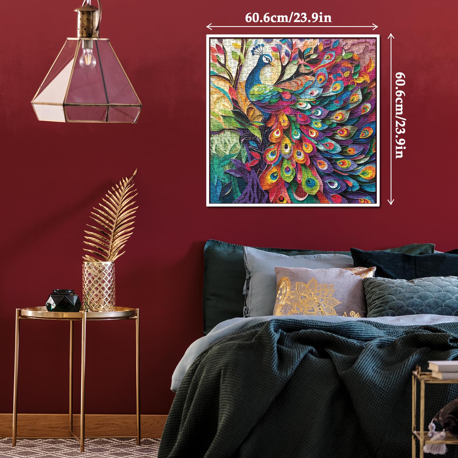 Colorful Peacock Puzzle for Adults 1000 Pieces, Pretty Papercut Bird Jigsaw Puzzle, Animal Beautiful Tree Puzzles