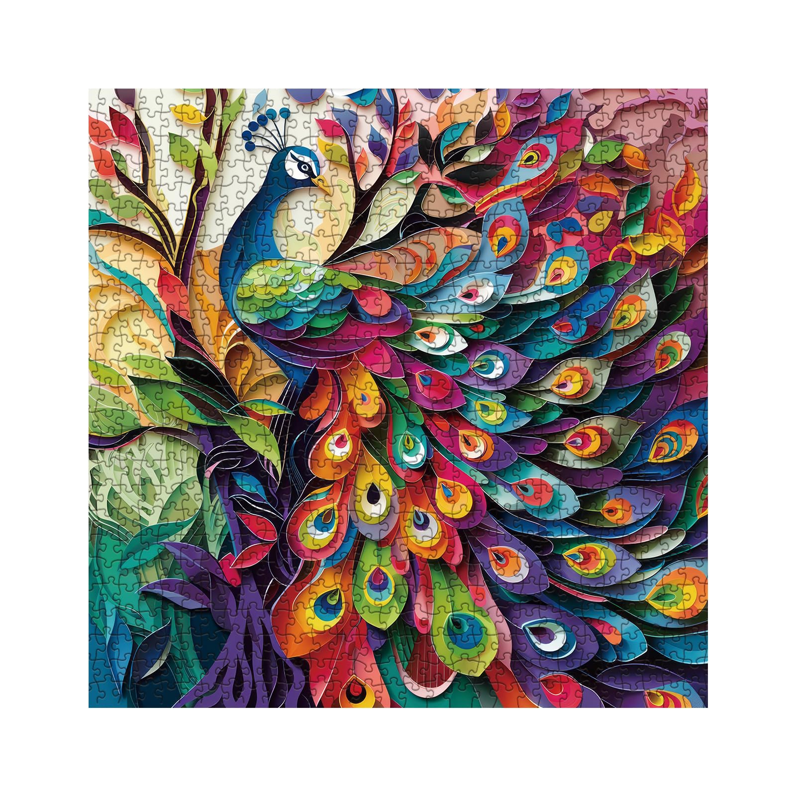 - Colorful Peacock Puzzle: A vibrant peacock in paper-cut style with a stunning array of colorful Plumage, createing a dreamy and lively atmosphere