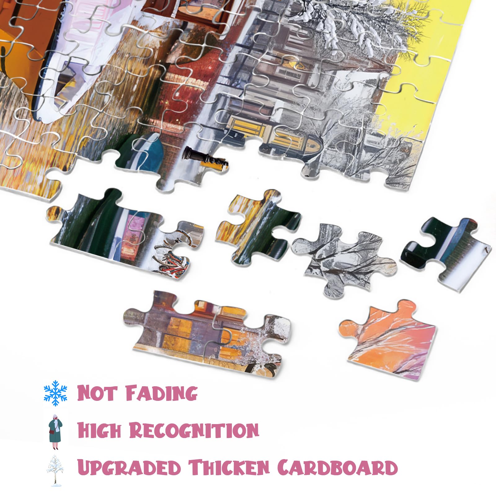 - 27.6*19.7in after finished. The winter puzzles 1000 pieces have letters on the back