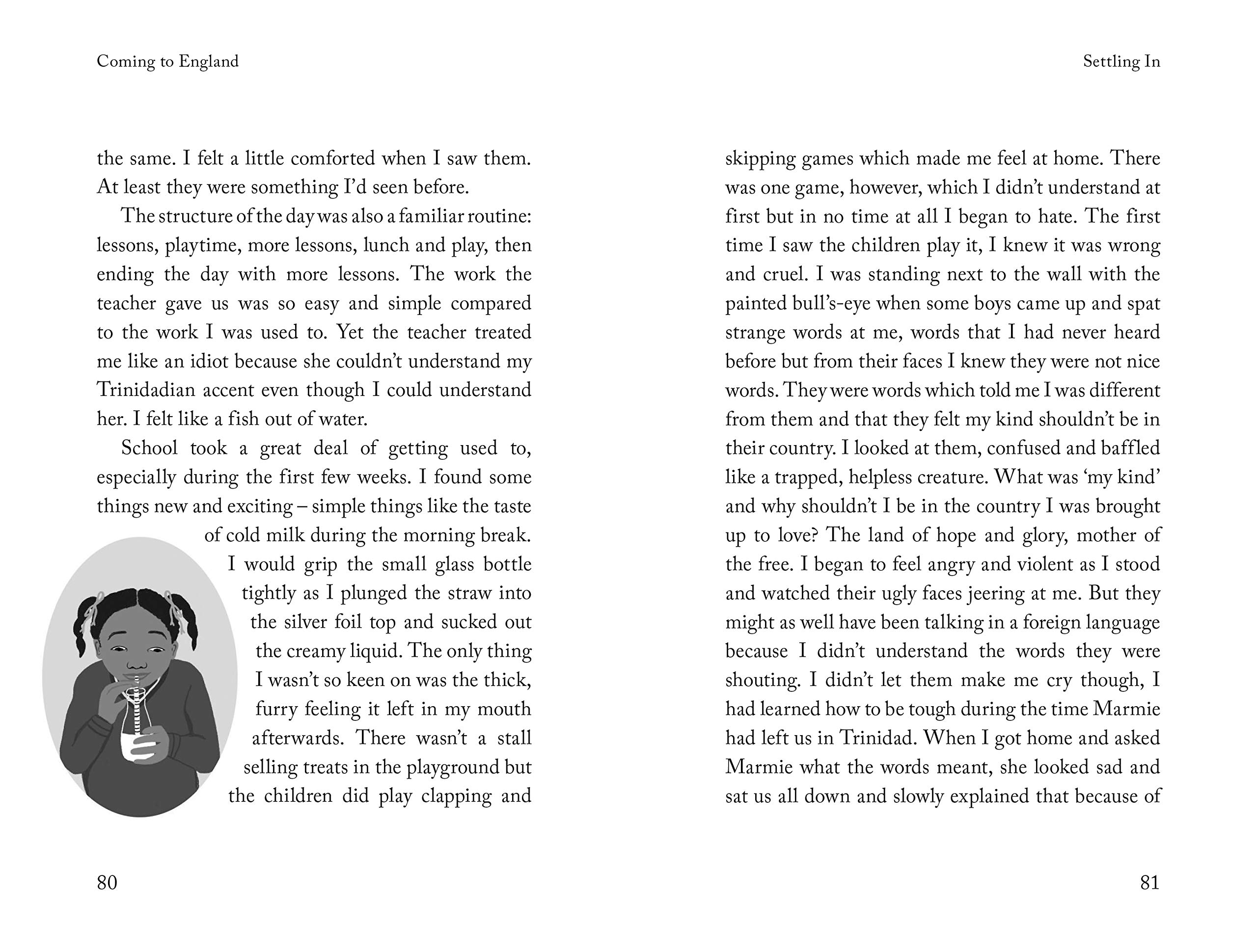This 25th anniversary edition of Floella Benjamin’s classic memoir, Coming to England, includes a foreword by the author and some additional historical information. It is beautifully illustrated by Michael Frith. Floella Benjamin was just a young girl when she, her sister and two brothers arrived in England in 1960 to join their parents, whom they had not seen for fifteen months. They had left the island paradise of Trinidad to make a new home in London – part of a whole generation of West Indians who were encouraged to move to Britain and help rebuild the country after the Second World War. Reunited with her mother, Floella was too overwhelmed at first to care about the cold weather and the noise and dirt from the traffic. But, as her new life began, she was shocked and distressed by the rejection she experienced. She soon realized that the only way to survive was to work twice as hard and be twice as good as anyone else. This inspirational story is a powerful reminder that courage and determination can overcome adversity.