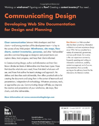 Most discussion about Web design seems to focus on the creative process, yet turning concept into reality requires a strong set of deliverablesthe documentation (concept model, site maps, usability reports, and more) that serves as the primary communication tool between designers and customers. Here at last is a guide devoted to just that topic. Combining quick tips for improving deliverables with in-depth discussions of presentation and risk mitigation techniques, author Dan Brown shows you how to make the documentation you’re required to provide into the most efficient communications tool possible. He begins with an introductory section about deliverables and their place in the overall process, and then delves into to the different types of deliverables. From usability reports to project plans, content maps, flow charts, wireframes, site maps, and more, each chapter includes a contents checklist, presentation strategy, maintenance strategy, a description of the development process and the deliverable’s impact on the project, and more.