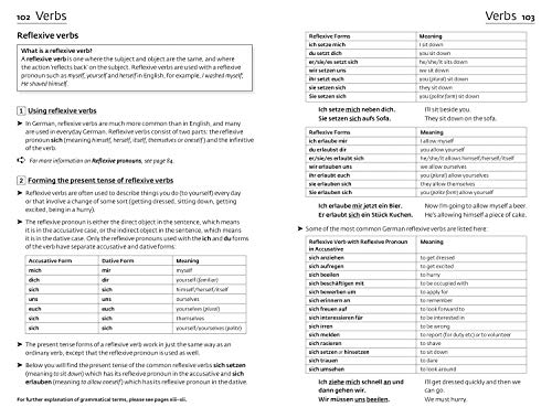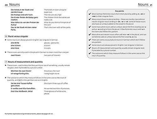 The grammar section provides easily accessible information, with key grammatical points highlighted throughout, hundreds of examples of real German, and a full glossary of grammatical terminology. The verbs section offers 127 fully conjugated regular and irregular verbs. Major constructions and idiomatic phrases are given for all verb models. The handy vocabulary section covers 50 topics (such as family, free time, careers, computing, education, food and drink, health, and shopping).