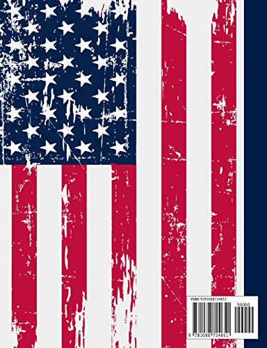 A New Style of Composition Notebooks! This cool, updated version composition books has a flexible softcover, a non-sewn book binding and is bright, glossy and fun! Check out the inside of the book by clicking on the “Look inside” feature where you can see width of lines and the back cover. Great to use as a notebook, journal, diary or for creative writing projects. Ideal for teachers, kids (though not a primary composition), teens, tweens, middle, high school and college students, or anyone who enjoys a patriotic notebook. Features: Dimensions are 7.44 x 9.69 inches 110 college ruled lined pages Paperback, soft cover design. Glossy. (Not a sewn binding.) White interior pages MADE IN THE USA Created with love