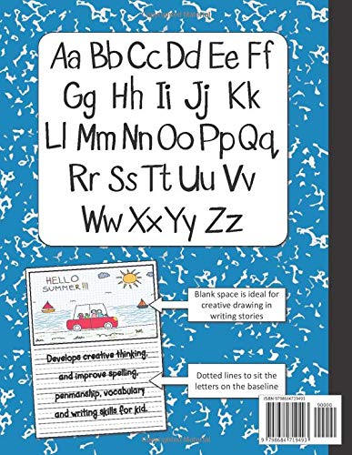 Composition book primary journal draw top lines bottom: Hand writting practice book 8.5×11 with dotted lines and drawing area, Primary composition … K-2 and elementary, homeschool supplies