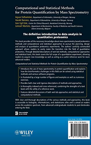 The definitive introduction to data analysis in quantitative proteomics This book provides all the necessary knowledge about mass spectrometry based proteomics methods and computational and statistical approaches to pursue the planning, design and analysis of quantitative proteomics experiments. The author’s carefully constructed approach allows readers to easily make the transition into the field of quantitative proteomics. Through detailed descriptions of wet-lab methods, computational approaches and statistical tools, this book covers the full scope of a quantitative experiment, allowing readers to acquire new knowledge as well as acting as a useful reference work for more advanced readers. Computational and Statistical Methods for Protein Quantification by Mass Spectrometry: Introduces the use of mass spectrometry in protein quantification and how the bioinformatics challenges in this field can be solved using statistical methods and various software programs. Is illustrated by a large number of figures and examples as well as numerous exercises. Provides both clear and rigorous descriptions of methods and approaches. Is thoroughly indexed and cross-referenced, combining the strengths of a text book with the utility of a reference work. Features detailed discussions of both wet-lab approaches and statistical and computational methods. With clear and thorough descriptions of the various methods and approaches, this book is accessible to biologists, informaticians, and statisticians alike and is aimed at readers across the academic spectrum, from advanced undergraduate students to post doctorates entering the field.