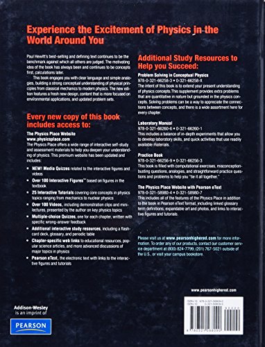 Brief Description: Since defining this course 30 years ago, Paul Hewitt’s best-selling book continues to be the benchmark book that two-thirds of professors use and by which all others are judged. In Conceptual Physics, Eleventh Edition Paul Hewitt shows how a compelling book and the most advanced media can be integrated to empower professors as they bring physics to life for non-science majors, both in and out of class. For the Eleventh Edition , Hewitt helps readers connect physics to their everyday experiences and the world around them, and provides additional help on solving mathematical problems. Hewitt’s book is famous for engaging readers with analogies and imagery from real-world situations that build a strong conceptual understanding of physical principles ranging from classical mechanics to modern physics. With this strong foundation, readers are better equipped to understand the equations and formulas of physics, and are motivated to explore the thought-provoking exercises and fun projects in each chapter. The new edition features a fresh new design, content that is more focused on physics applications, and updated pedagogical features. Key Topics: About Science, Newton’s First Law of Motion: Inertia, Linear Motion, Newton’s Second Law of Motion: Force and Acceleration Newton’s Third Law of Motion: Action and Reaction, Momentum, Energy, Rotational Motion, Gravity, Projectile and Satellite Motion Atomic Nature of Matter, Solids, Liquids, Gases and Plasmas, Temperature, Heat and Expansion, Heat Transfer, Change of Phase Thermodynamics, Vibrations and Waves, Sound, Musical Sounds, Electrostatics, Electric Current, Magnetism, Electromagnetic Induction, Properties of Light, Color, Reflection and Refraction, Light Waves, Light Emission, Light Quanta, The Atom and the Quantum, Atomic Nucleus and Radioactivity, Nuclear Fission and Fusion, Special Theory of Relativity, General Theory of Relativity Appendices Market: Intended for those interested in learning the basics of conceptual physics