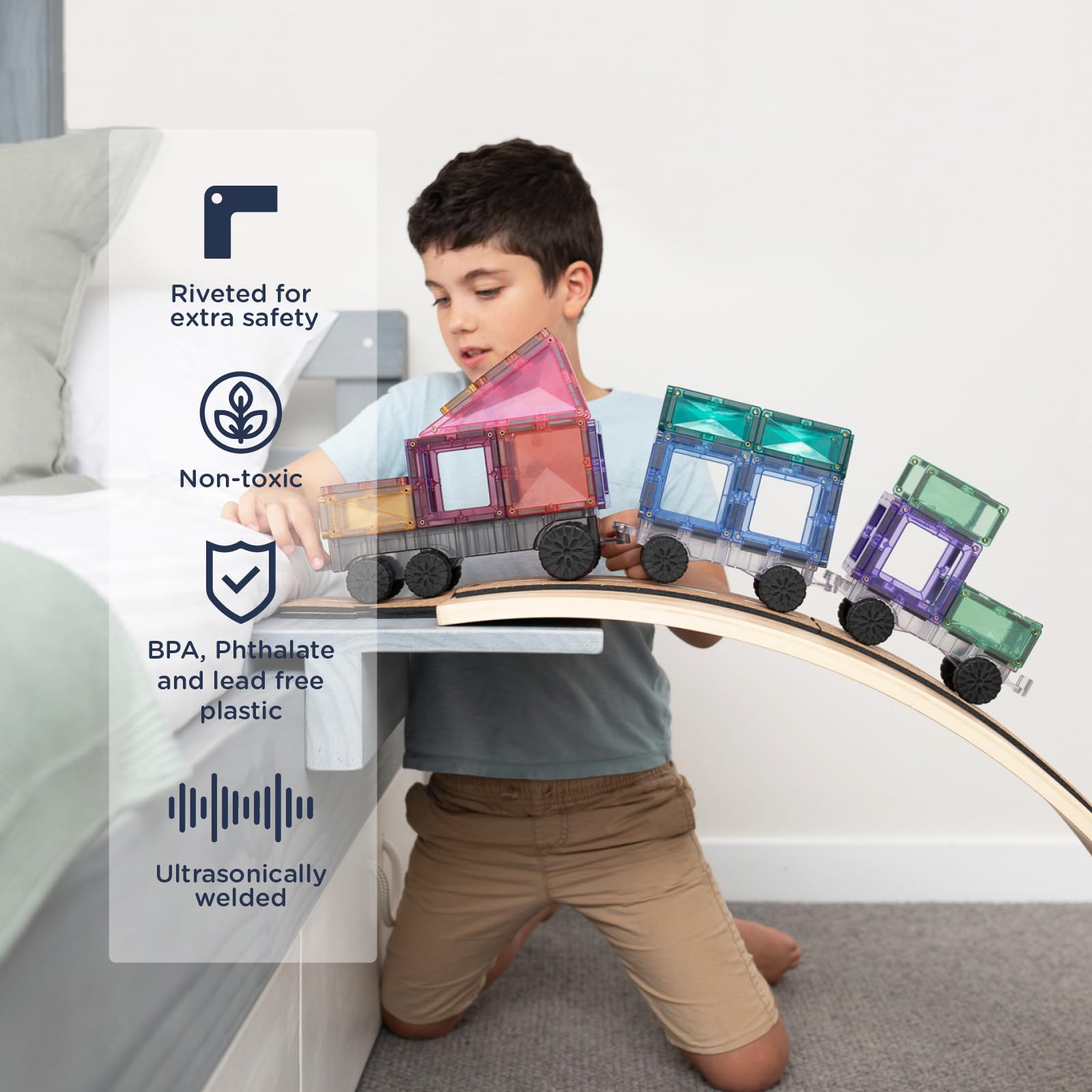- ENHANCED SAFETY FEATURES – All tiles are made using non-toxic ABS plastic that is BPA and Phthalate free, ultrasonically sealed and riveted for extra safety. Recommended for and enjoyed by builders ages 3-100.