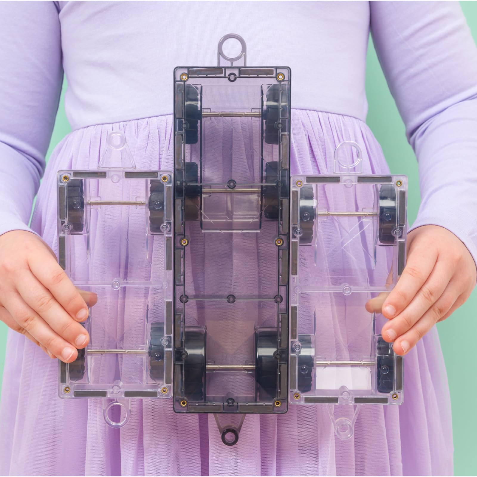 - PERFECT FOR VEHICLE ENTHUSIASTS – Featuring a REVERSIBLE light grey transport base and two clear motion bases, all with REAL rubber wheels, there are endless vehicle design possibilities to imagine and create with the CONNETIX 50 Piece Transport Pack! Created with vehicle enthusiasts in mind, watch imaginations flourish as children build vehicles they know and love, or something completely new!