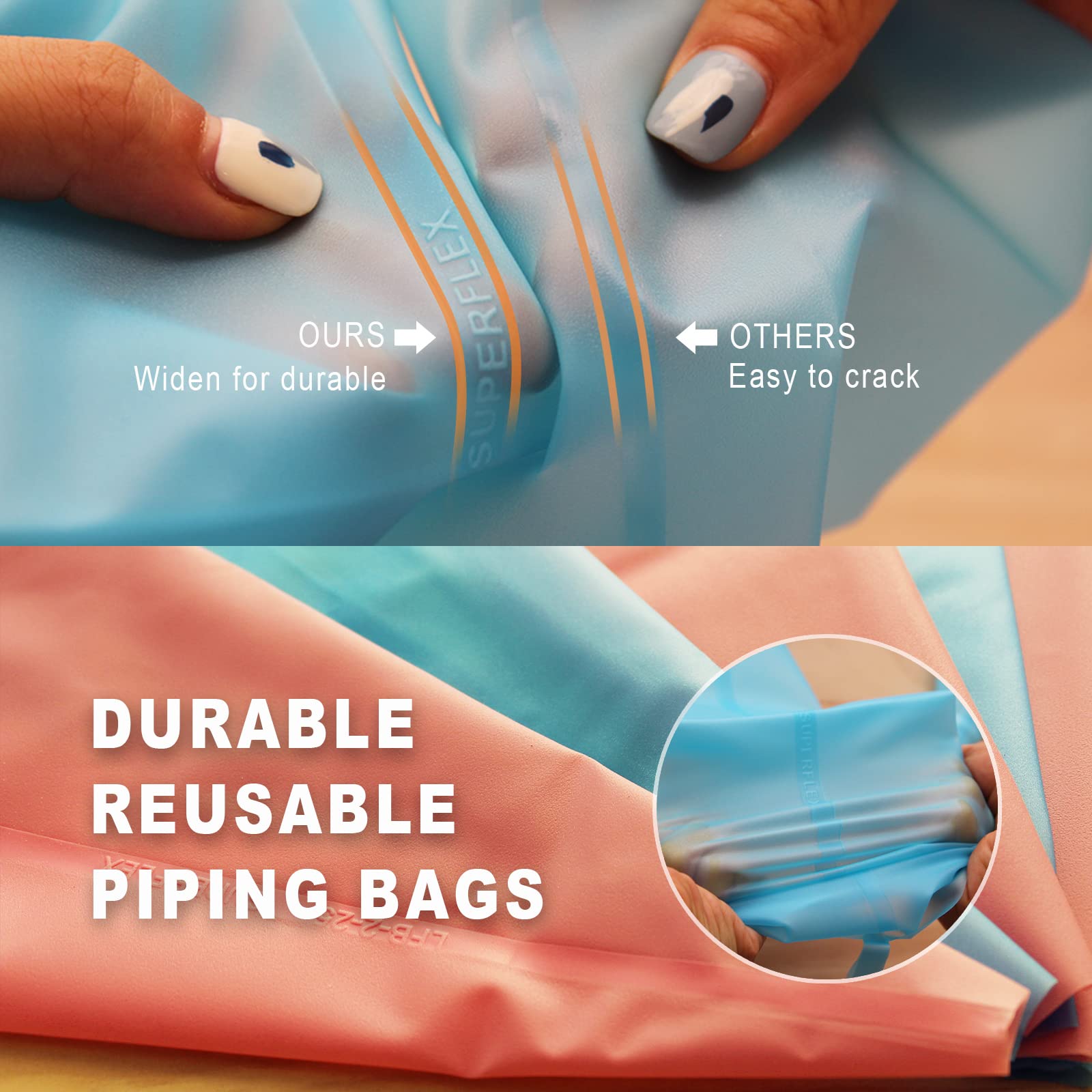 - [(Piping Bags and Tips Set for Easy Switching)] With durable converters, the icing bags tips can be easily switched instead of hollowing out icing, definitely helpful for different patterns of cookie decoration. The non-slip exterior and soft material allow you to hold it more comfortably, easy to use and clean. With 6 shapes icing piping nozzles, include Leaf, Stars, Basketweave, and Rounds, help you complete the boldest cookie design!