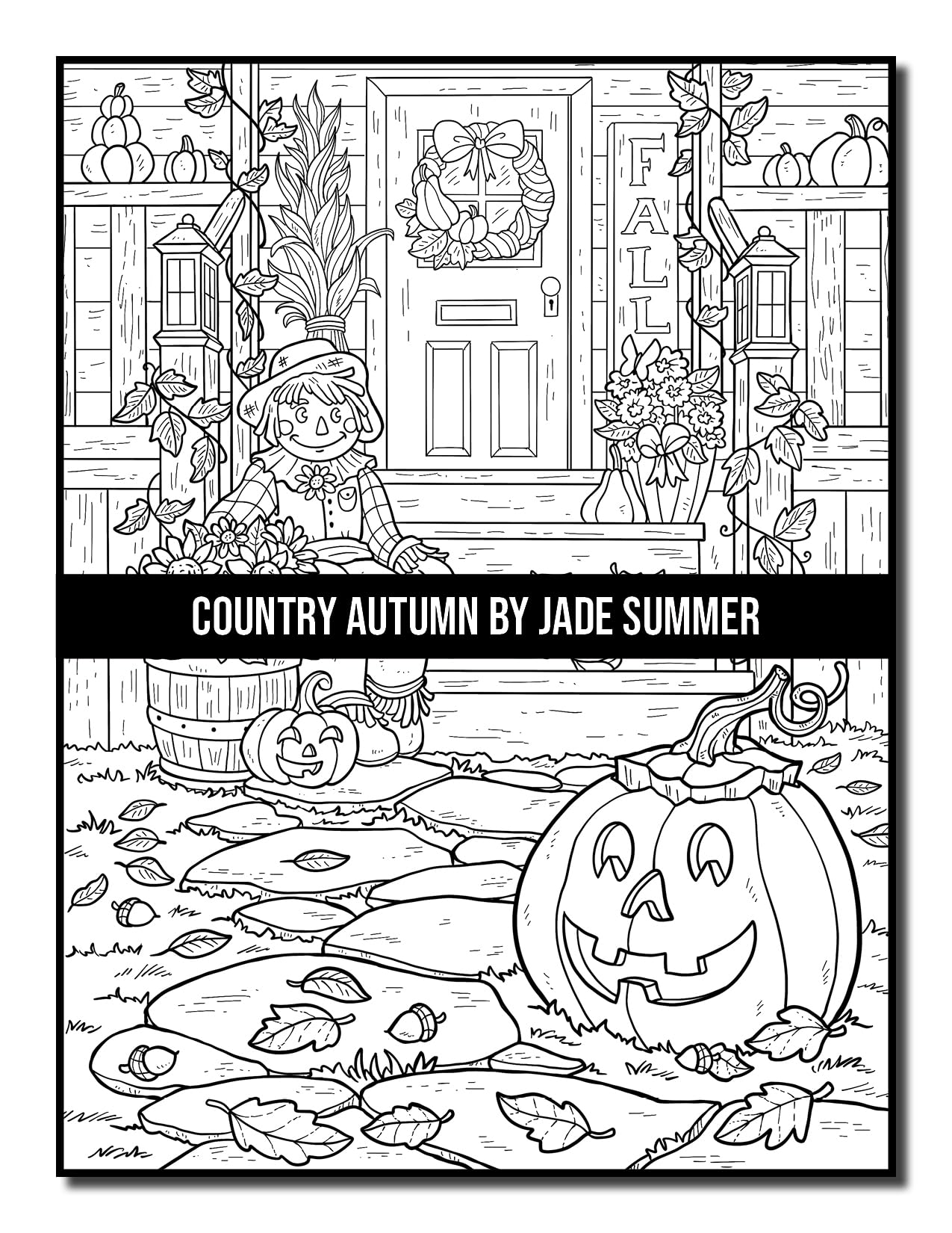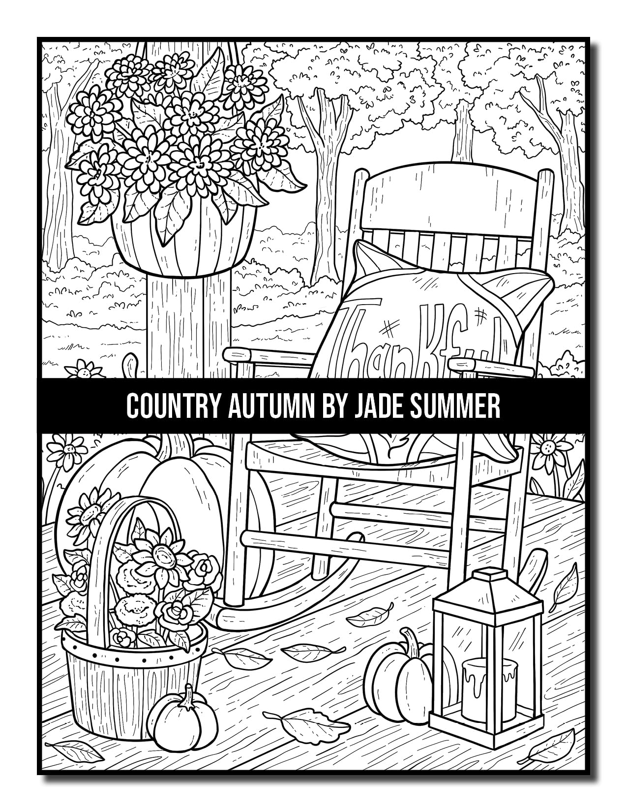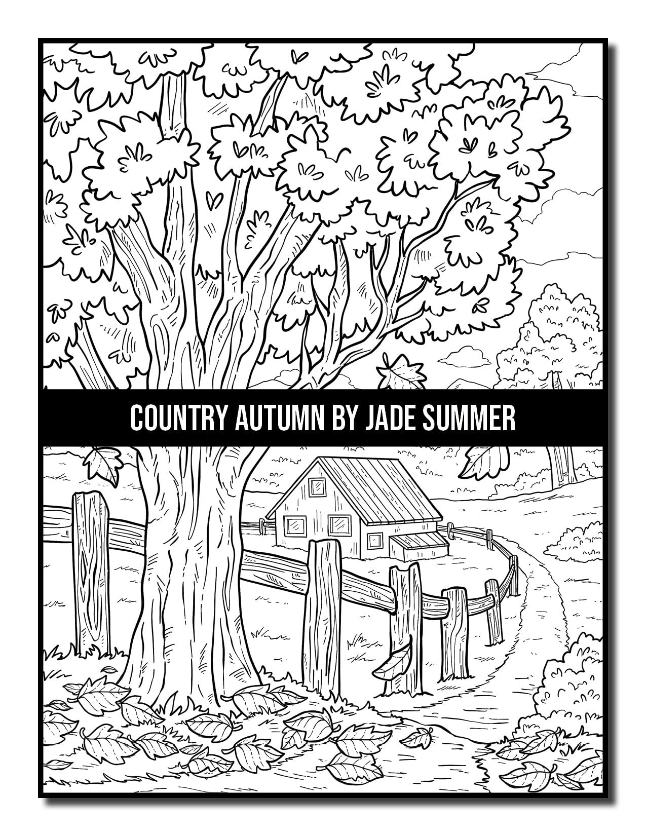 Country Autumn: An Adult Coloring Book with 50 Detailed Images of Charming Country Scenes, Beautiful Fall Landscapes, and Lovable Farm Animals (Country Coloring Books)