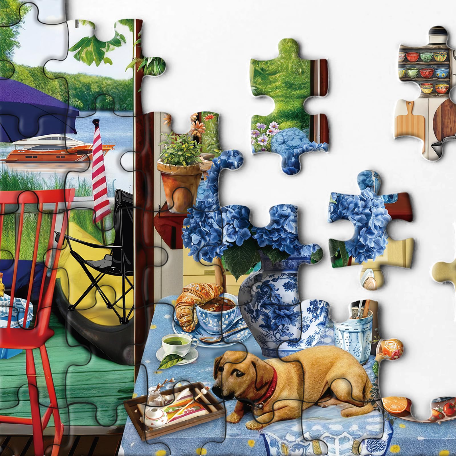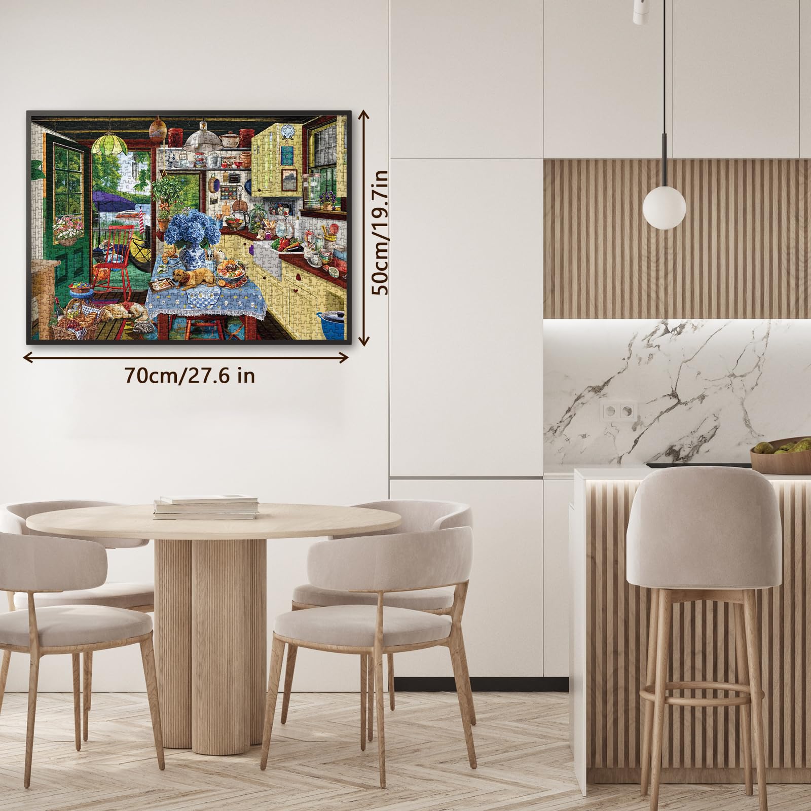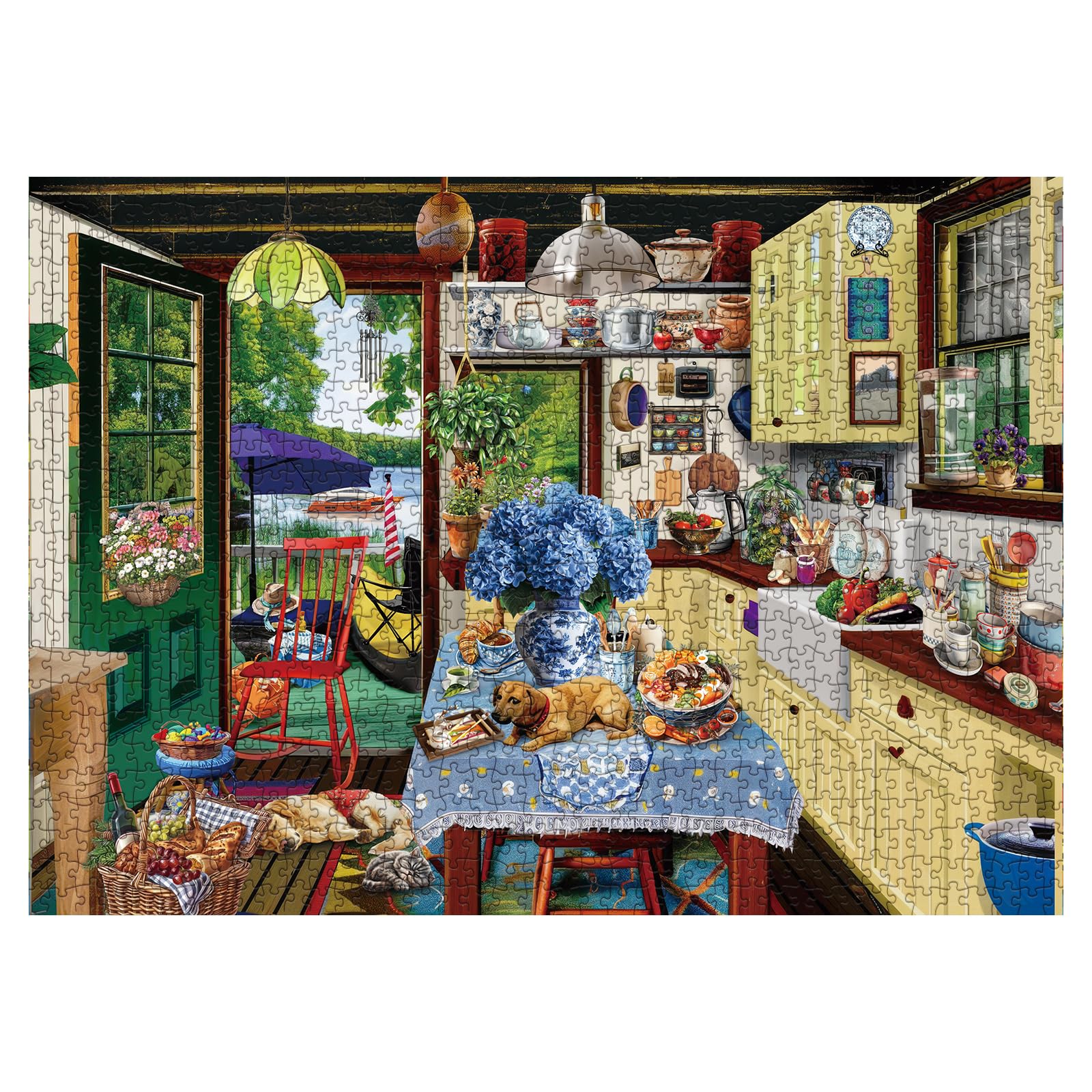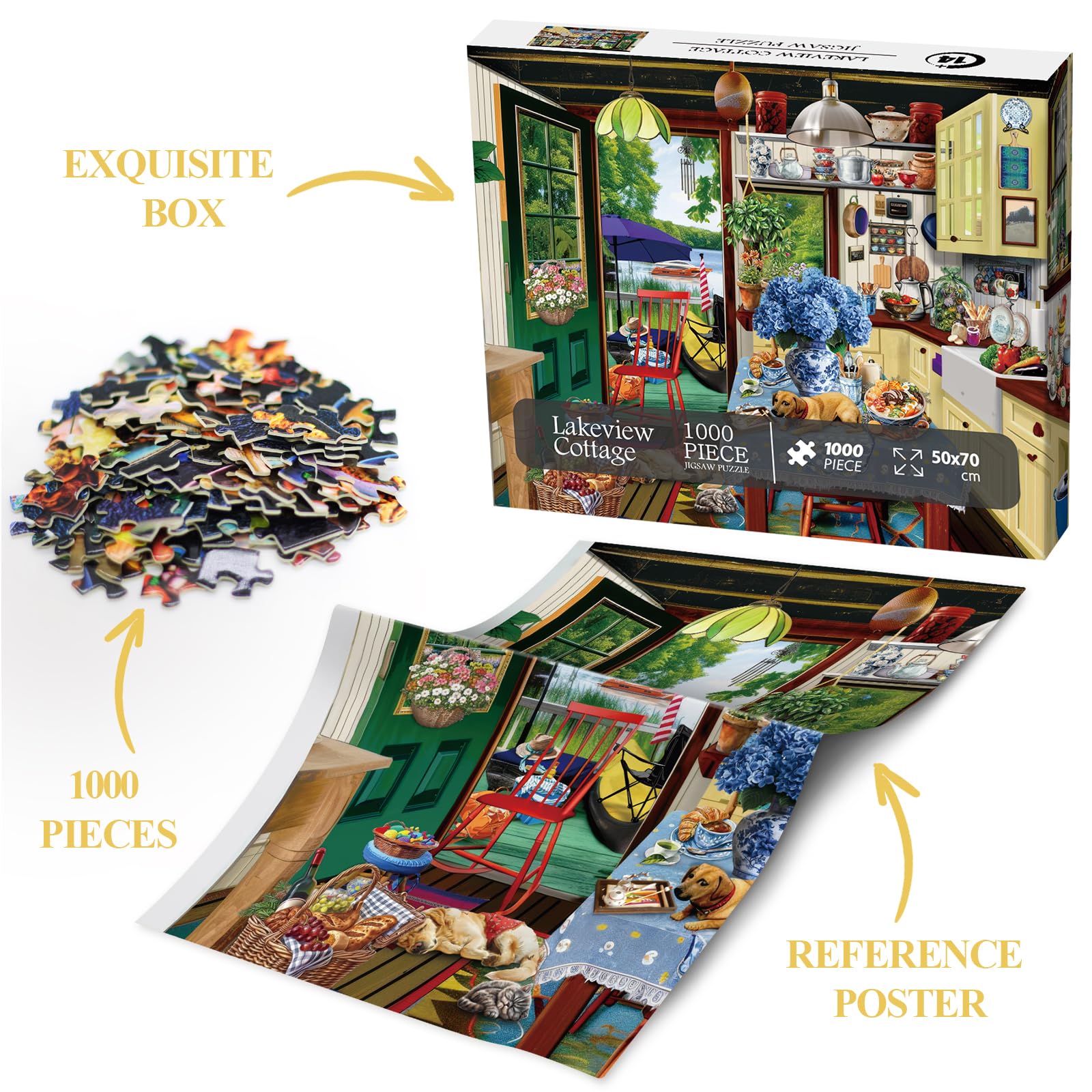 Cozy Lake Cottage Puzzle 1000 Pieces for Adults, Vintage Kitchen Cabin Jigasw Puzzles Scenic, Food Flower Plant Puzzle as Home Decor