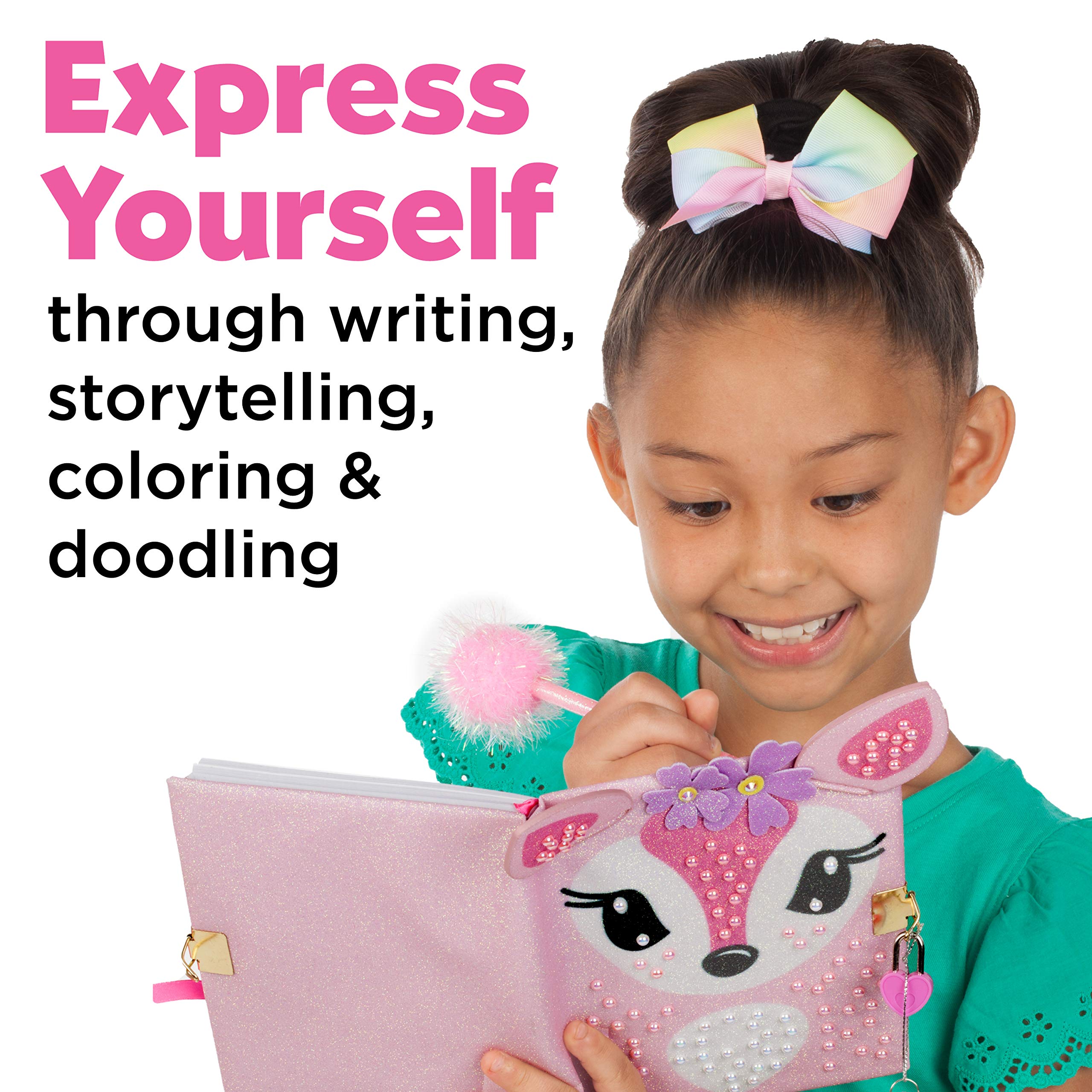 Keep your notes, secrets and stories safe in a super-sweet deer shaped diary with Creativity for Kids Deer Diary! This 100-page locking diary for kids comes with a heart shaped lock, 2 heart shaped keys, 5 neon highlighter markers, a glittery pom-pom pen, 80 glitter stickers, 100+ assorted pearls, craft glue, instructions and ideas. Writing is a positive way for kids to express their thoughts, emotions and feelings. No complicated calligraphy or journaling! Unlock your diary to discover positive aspiration art, writing prompts and plenty of punny pages to color and bring to life. Add your style to every diary page with colorful stickers, highlighters and more! Express yourself with writing prompts such as “what makes you smile” to help inspire kids with what to write about! Use the blank pages in the cute diary for kids to write your stories and secrets! Writing in a diary is a fun way to encourage penmanship, storytelling, and creativity. Keep your stories and thoughts safe from everyone by locking your diary after you are done using it. Since 1976, Creativity for Kids has proudly created craft experiences designed to build creative confidence and inspire self-expression. Creativity for Kids craft kits are a unique way unplug, unwind and have fun while learning a new crafting skill. Recommended for ages 6 and up.