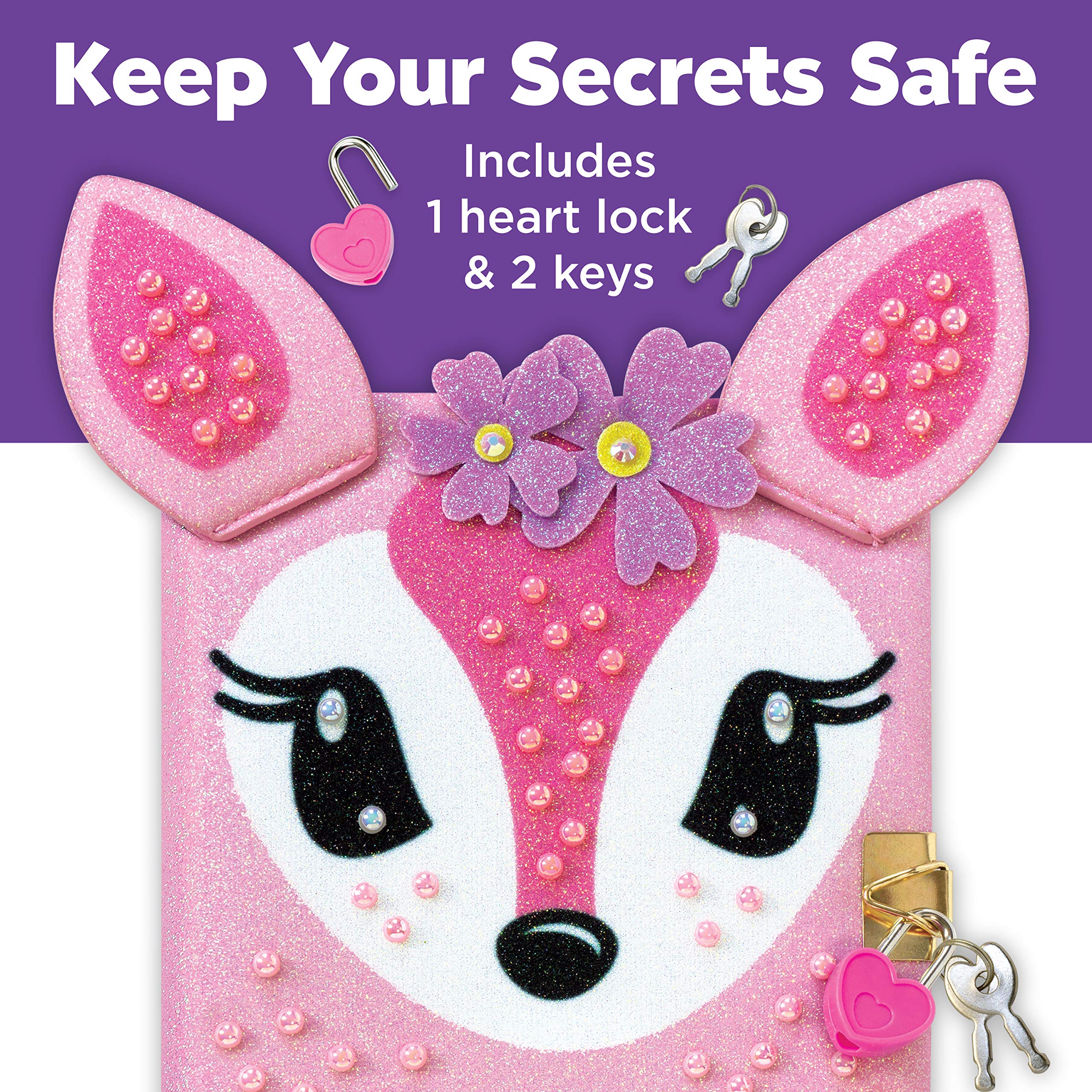 - DEER DIARY – This super-sweet diary for kids comes ready to decorate with pearl rhinestones, flowers, pink ribbon bookmark and other fun dimensional accents, just add imagination! Keep your secret diary safe with a heart shaped lock and two keys
