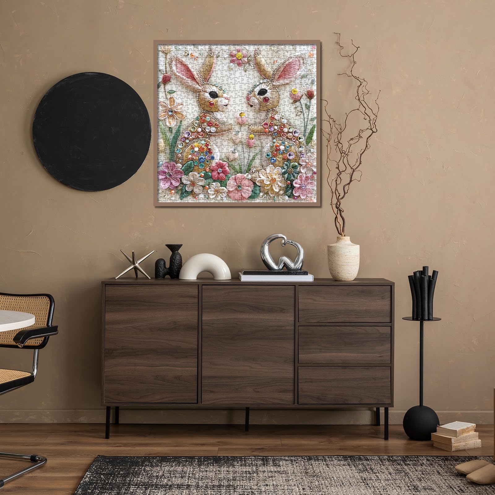 - Ideal Decor & Presents: This vibrant puzzle features two jeweled rabbits with sparkling gemstones and blooming flowers, adding elegance and whimsical charm to any room. Suitable for hanging in living rooms, studies, or bedrooms, it enhances the aesthetic of your space