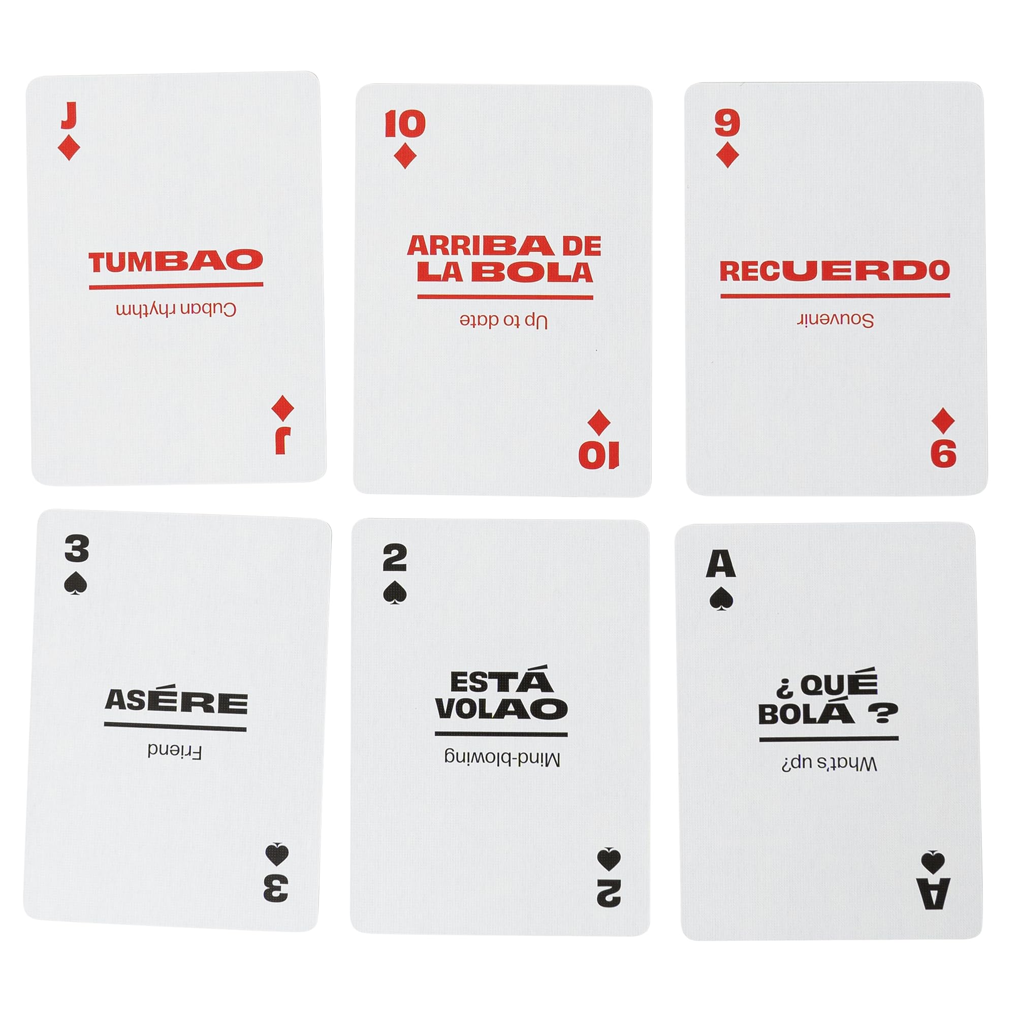 - STANDARD PLAY DECK – Each deck of cards has 54 of the most useful phrases to know in Cuba, complete with phonetic pronunciations, and features a conventional deck of 52 playing cards and two jokers. These flash cards provide an introduction to popular Cuban lingo and are ideal for language learners just starting out
