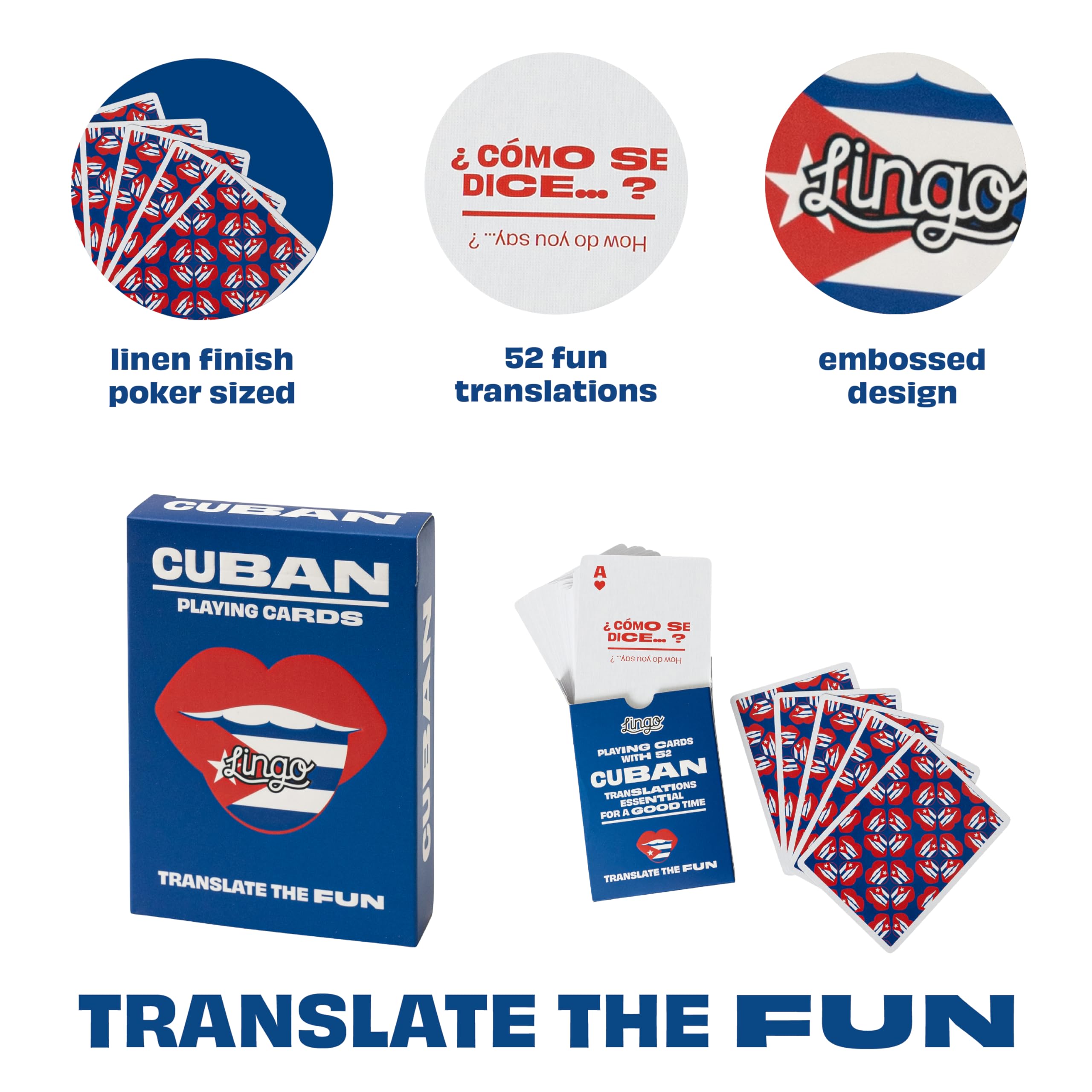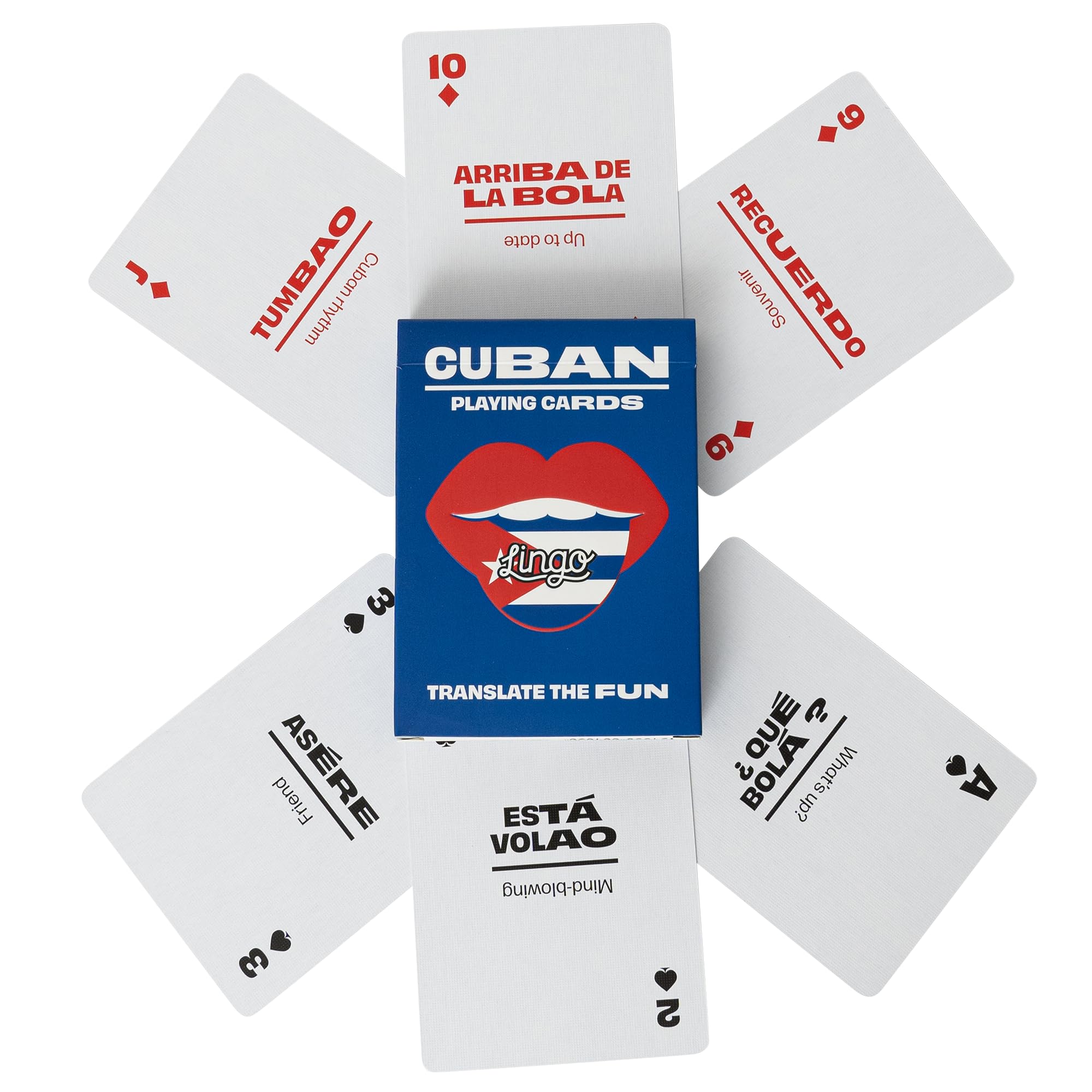 - COOL LANGUAGE LEARNING METHOD – Discover the fascinating idioms and colorful slang that add spice and character to Cuban Spanish, allowing you to connect with locals and unlock the heart and soul of this vibrant culture. Lingo playing card decks come in most of the popular languages such as: Irish, Jamaican, Persian, Mandarin, Portugese, Italian, German, Japanese. Learn a language with unique playing cards!