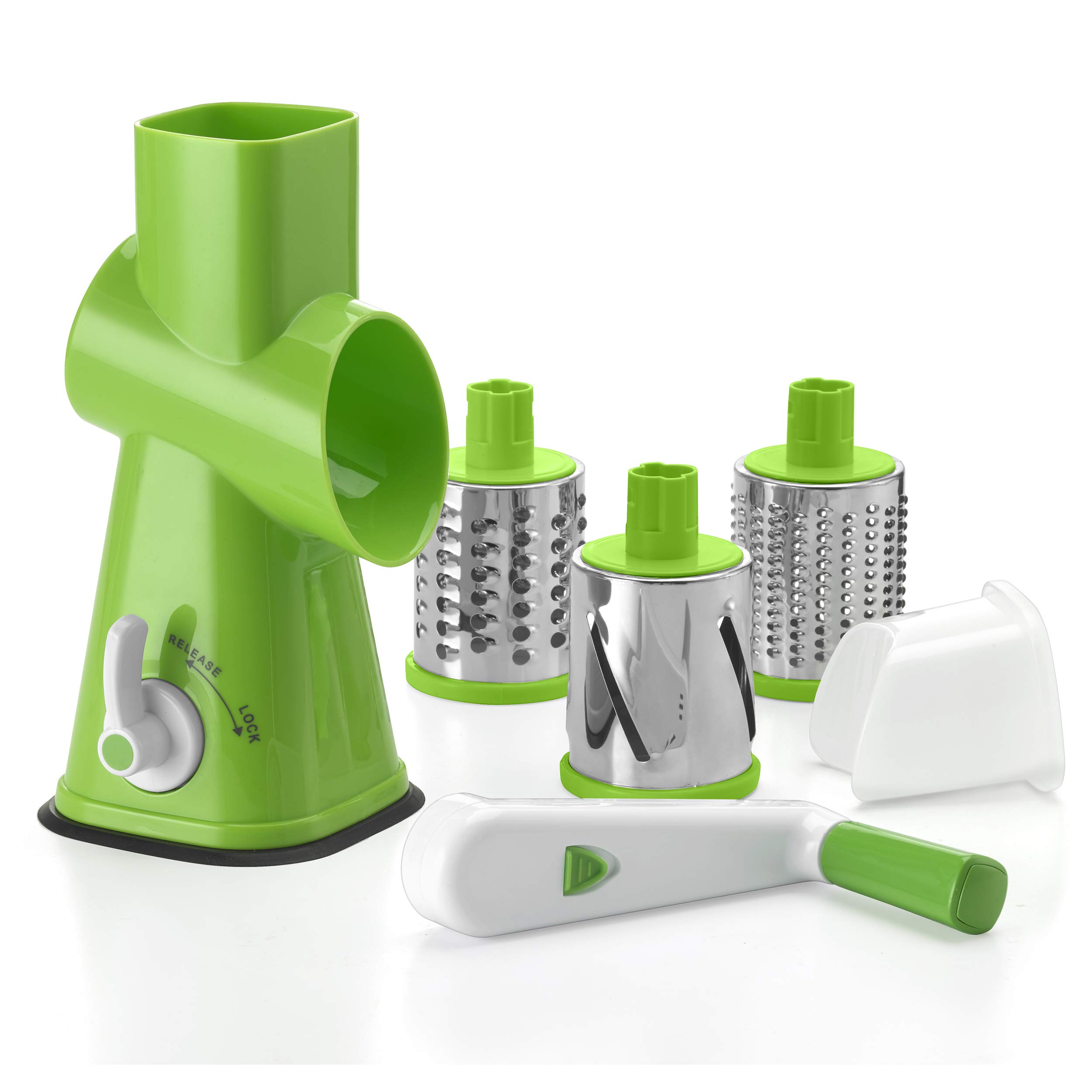 The Cuisinart Fresh slice Drum grater lets you create fine or coarse shreds or slices of a verity of cheeses, nuts, veggies and fruits. Three cutting drums and a food pusher lets you prep food in less time. The pusher keeps fingers safely away from the blade and lets you grate or slice them right down to the ends to reduce waste. Easy to put together, take apart and removable parts are dishwasher safe.
