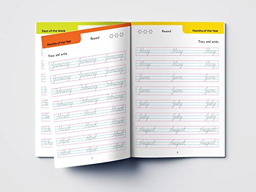 This set of two ‘Level 2’ workbooks helps children advance their cursive handwriting by practicing words and sentence formation.