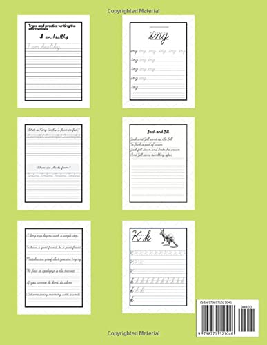 Your child will learn to write in cursive with the help of an illustrated coloring book and tracing exercises for words, sentences, jokes or poems. Invest in this Beginner Cursive Handwriting Workbook for children of all ages, which includes more than 133 pages of practice, to help your child succeed in school. clubs For each letter of the alphabet – lowercase and capital – trace it, then copy it. clubs Write a series of simple and then more complex words. clubs Copy the jokes and poems from the workbook to learn how to write complete sentences. clubs With the help of this workbook, children will progress from novices to confident sentence-writers. spades 8.5″ x 11″ – Large size spades 133 pages of writing exercises. Now is the time to get your child started on the exciting journey of learning to write in cursive. It’s the ideal gift for any occasion.