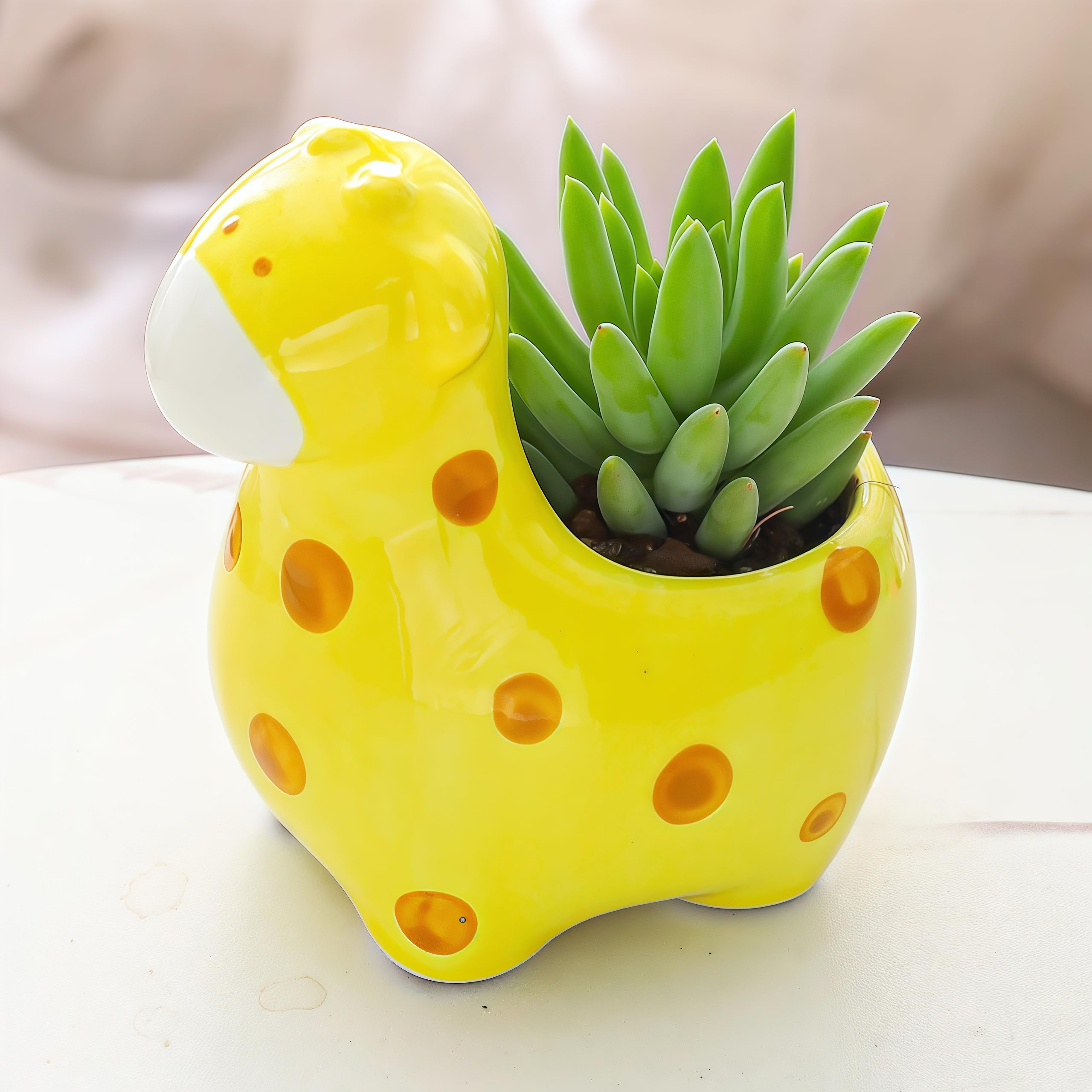 Cuteforyou Succulent Pots,Cute Animal Shaped Air Plant Holder Flower Planters-Plants Not in Included (Yellow Giraffe)