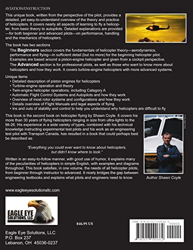 Possibly the most complete book written to date on helicopters and helicopter flying. Covers subjects not covered by other manuals such as turbine engines, performance, flight manuals, automatic flight controls, legal aspects, introductory stability and control and multi-engine helicopters.
