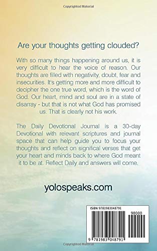 Clear your mind and open your hearts. With so many things happening around us, it is very difficult to hear the voice of reason. Our thoughts are filled with negativity, doubt, fear and insecurities. It’s getting more and more difficult to decipher the one true word, which is the word of God. Our heart, mind and soul are in a state of disarray – but that is not what God has promised us. That is clearly not his work. In a time where we have access to almost everything and can get anything we want, it seems we are more discontented. How ironic, right? Let God shed some light about Contentment in our hearts through his words. Reflect and learn to be happy and content with what you have been blessed with. We are lucky to be alive and given an opportunity to thrive. The Daily Devotional Journal is a 30-day Devotional with relevant scriptures and journal space that can help guide you to focus your thoughts and reflect on significant verses that get your heart and minds back to where God meant it to be at. Life is Wonderful with God. We only have one life to live and it is our duty to make it count. You hear people saying that life didn’t come with a manual, but it did. We were given The Bible to give us insights on how to live and deal with difficult situations. This way, you can read God’s Word and record your deepest desires, dreams, hopes, thoughts, and the messages God writes upon your heart as you spend 30 days with him. This is your journey. Journal daily and witness your transformation through HIS words. When you finish the cycle, you will be glad to see how the word moves you in a positive light. YOLOSpeaks aims to offer guidance and reflections on the truest of the true. The Bible. This is our way to give you tiny tidbits of God’s message so you may be able to relate this to the one life you are lucky enough to live.