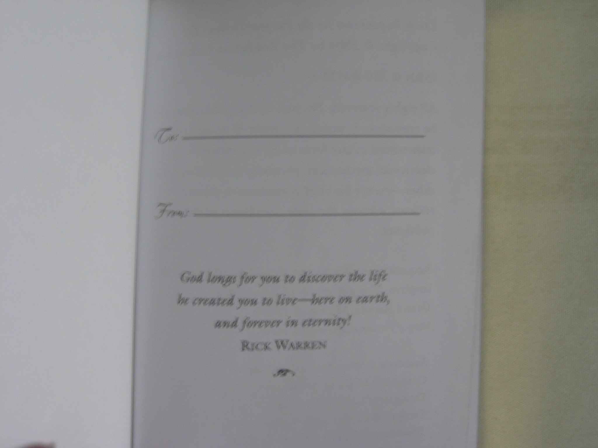 With over 1,000 Scriptures outlining each day of the 40 Days of Purpose, this book is a wonderful reference. Winner of the Retailers Choice Award.