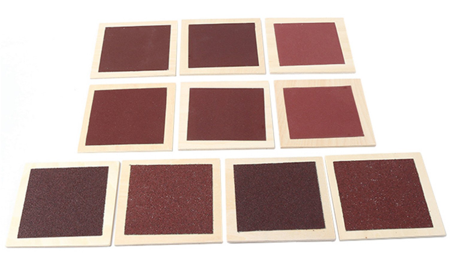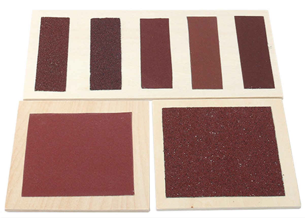 - Feel the baby’s sensitive touch by touching the roughness of the sandpaper. Identify according to the roughness and classify the sandpaper.