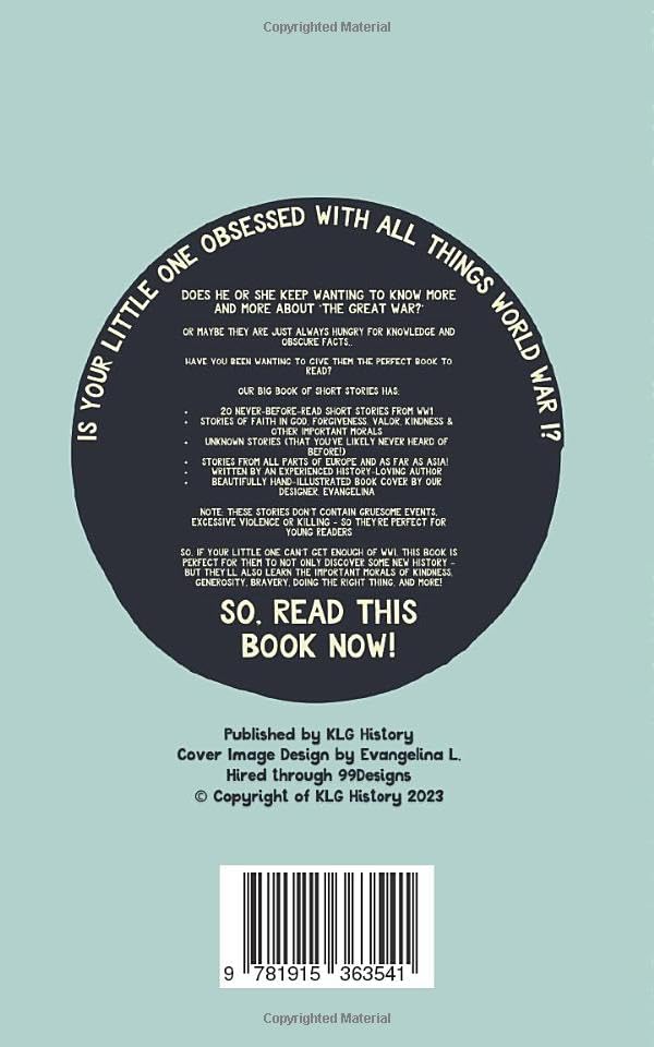 Is your child obsessed with all things World War I? Does he or she keep wanting to know more and more about ‘The Great War?’ Or maybe they are just always hungry for knowledge and obscure facts.. Have you been wanting to give them the perfect book to read? Our big book of short stories has: – 20 never-before-read short stories from WW1 – Stories of Faith in God, forgiveness, bravery, kindness & other important morals – Unknown stories (that you’ve likely never heard of before!) – Stories from all parts of Europe and as far as Asia! – Written by an experienced history-loving author – Beautifully hand-illustrated book cover by our designer, Evangelina NOTE: These stories don’t contain gruesome events, excessive violence or killing – so they’re perfect for young readers So, if your little one can’t get enough of WWI, this book is perfect for them to not only discover some new history – but they’ll also learn the important morals of kindness, generosity, bravery, doing the right thing, and more! Scroll up & click “Add to Cart” to satisfy their WWI hunger now!