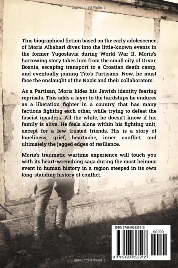 A young Bosnian-Jewish boy escapes transport to a WWII death camp, joining Tito’s Partisans to fight the Nazi and Axis powers, and faces what no child should ever have to. This biographical fiction based on the early adolescence of Moris Albahari dives into the little-known events in the former Yugoslavia during World War II. Moris’s harrowing story takes him from the small city of Drvar, Bosnia, escaping transport to a Croatian death camp, and eventually joining Tito’s Partisans. Now, he must face the onslaught of the Nazis and their collaborators. As a Partisan, Moris hides his Jewish identity fearing reprisals. This adds a layer to the hardships he endures as a liberation fighter in a country that has many factions fighting each other, while trying to defeat the fascist invaders. All the while, he doesn’t know if his family is alive. He feels alone within his fighting unit, except for a few trusted friends. His is a story of loneliness, grief, heartache, inner conflict, and ultimately the jagged edges of resilience. Moris’s traumatic wartime experience will touch you with its heart-wrenching saga during the most heinous event in human history in a region steeped in its own long-standing history of conflict.