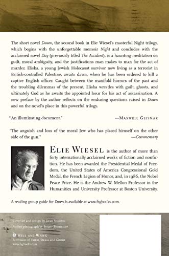 Elie Wiesel’s Dawn is an eloquent meditation on the compromises, justifications, and sacrifices that human beings make when they murder other human beings. “The author . . . has built knowledge into artistic fiction.” –The New York Times Book Review Elisha is a young Jewish man, a Holocaust survivor, and an Israeli freedom fighter in British-controlled Palestine; John Dawson is the captured English officer he will murder at dawn in retribution for the British execution of a fellow freedom fighter. The night-long wait for morning and death provides Dawn, Elie Wiesel’s ever more timely novel, with its harrowingly taut, hour-by-hour narrative. Caught between the manifold horrors of the past and the troubling dilemmas of the present, Elisha wrestles with guilt, ghosts, and ultimately God as he waits for the appointed hour and his act of assassination. The basis for the 2014 film of the same name, now available on streaming and home video.