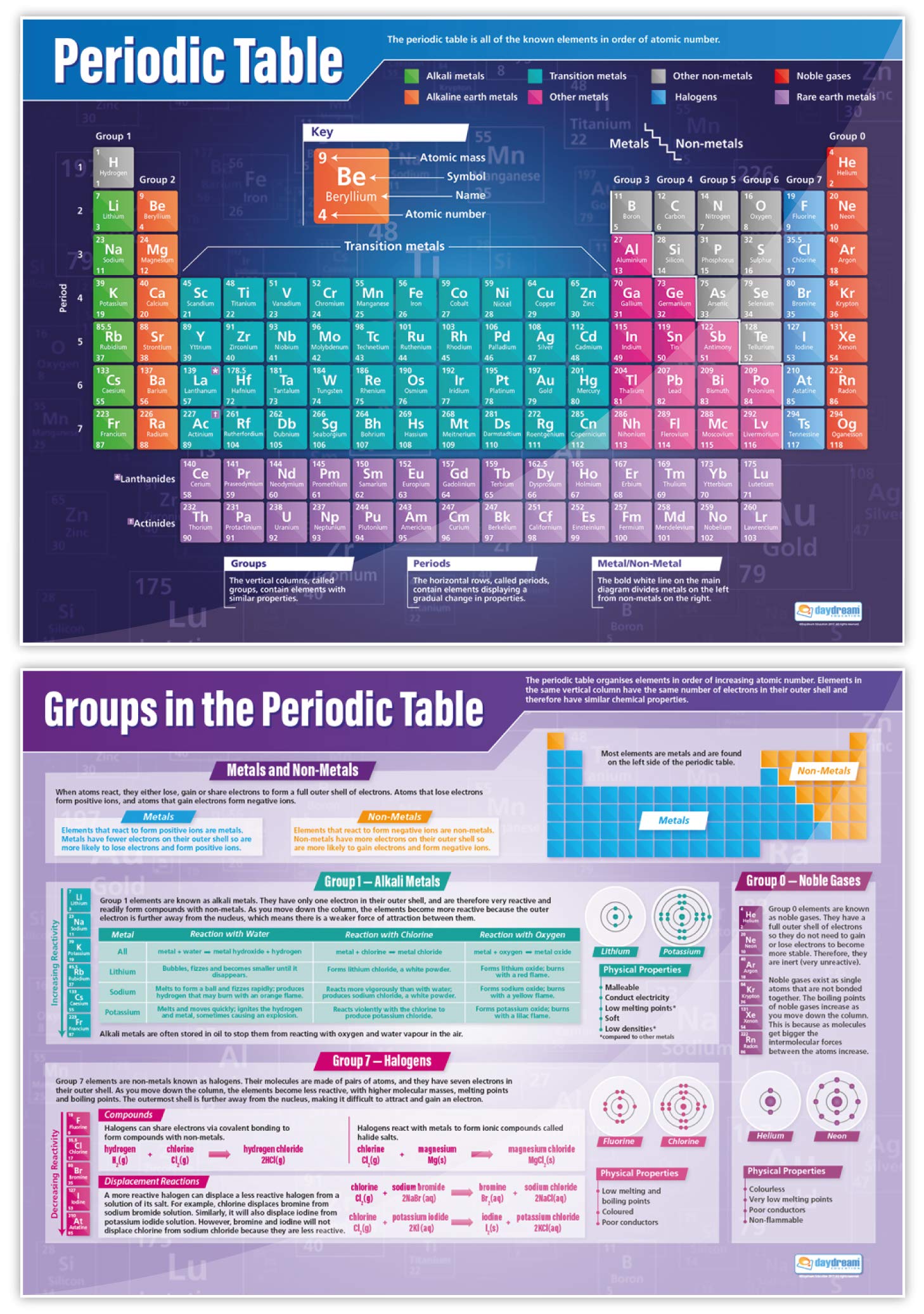 Daydream Education Atomic Structure & The Periodic Table Classroom Posters – Set of 5 – EXTRA LARGE 33″ x 23.5″ – Laminated – Science Middle & High School Class Decoration – Wall Charts