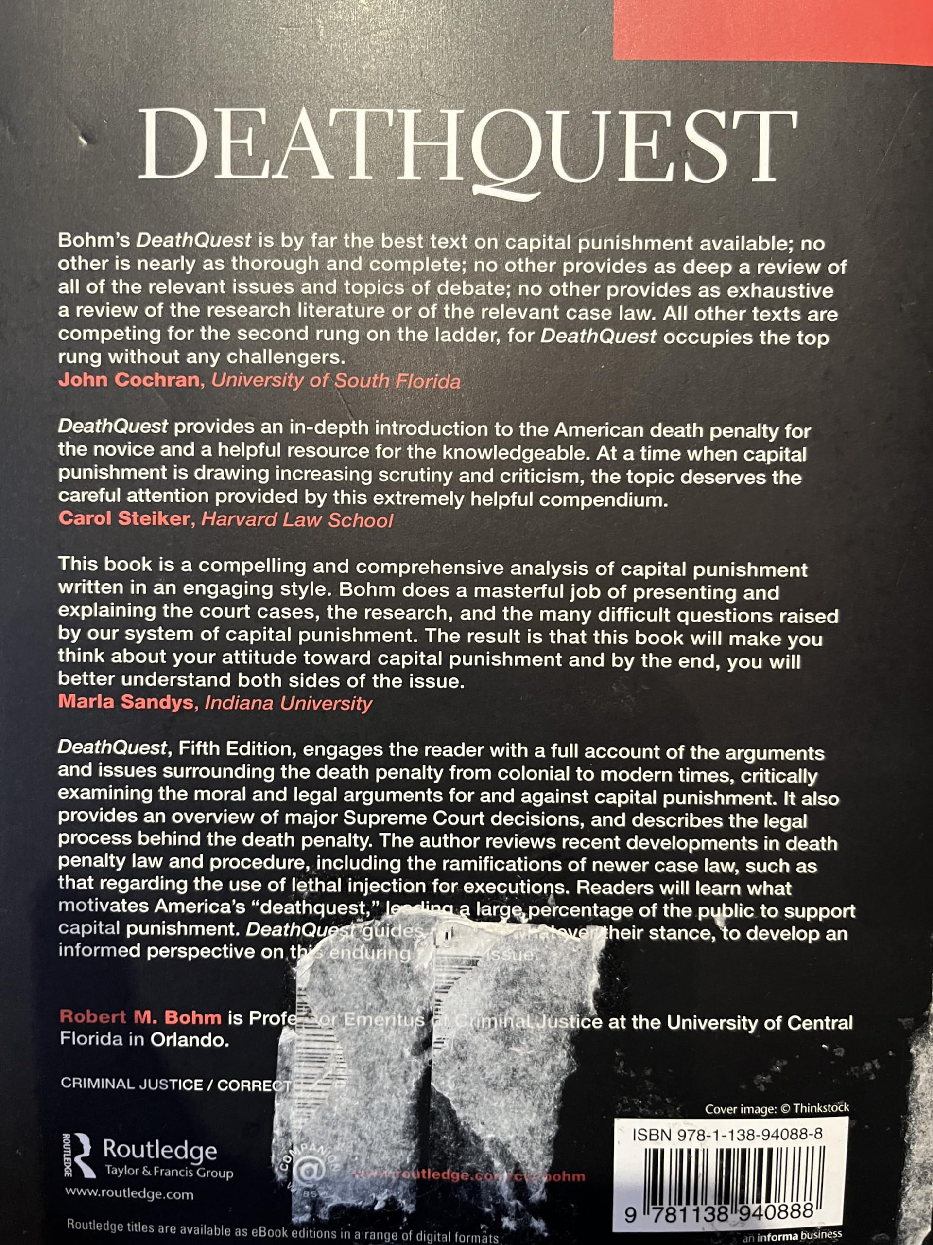 This fifth edition of the first true textbook on the death penalty engages the reader with a full account of the arguments and issues surrounding capital punishment. The book begins with the history of the death penalty from colonial to modern times, and then examines the moral and legal arguments for and against capital punishment. It also provides an overview of major Supreme Court decisions and describes the legal process behind the death penalty. In addressing these issues, the author reviews recent developments in death penalty law and procedure, including ramifications of newer case law, such as that regarding using lethal injection as a method of execution. The authors motivation has been to understand what motivates the “deathquest” of the American people, leading a large percentage of the public to support the death penalty. The book educates readers so that whatever their death penalty positions are, they are informed opinions.