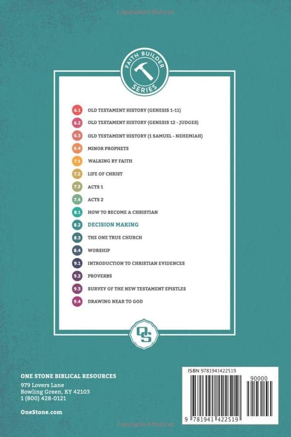 Do I dance? Should I take a drink? Is sex before marriage really that bad? Does it really matter what I wear or how much of my body is covered? What about tattoos and body piercings? Young people face many different choices and they need good information to help them make the right decision or help them overcome the consequences of bad decisions. This workbook is designed to give them that information from a biblical point of view. The Bible is a book of wisdom for young people and if properly used will help them make good decisions.This workbook also gives them Scriptural reasons for making those decisions and gives sound reasoning that will help young people know why they should follow these good reasons. They will also face opposition from their peers and overcoming this oppostion will make them stronger to face future temptations. A much needed study for this generation.