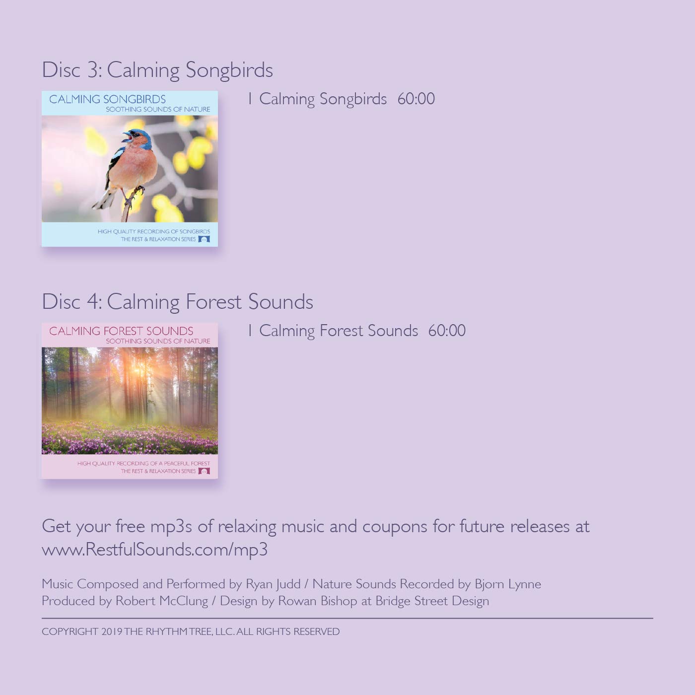 - Includes the sounds of rain and thunder, calming forest sounds, singing songbirds, and soothing guitar with ocean waves with tracks that are continuous recordings and are not looped.