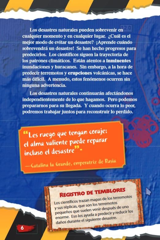 This Spanish-language book educates students on significant natural disasters throughout history and their global impact.